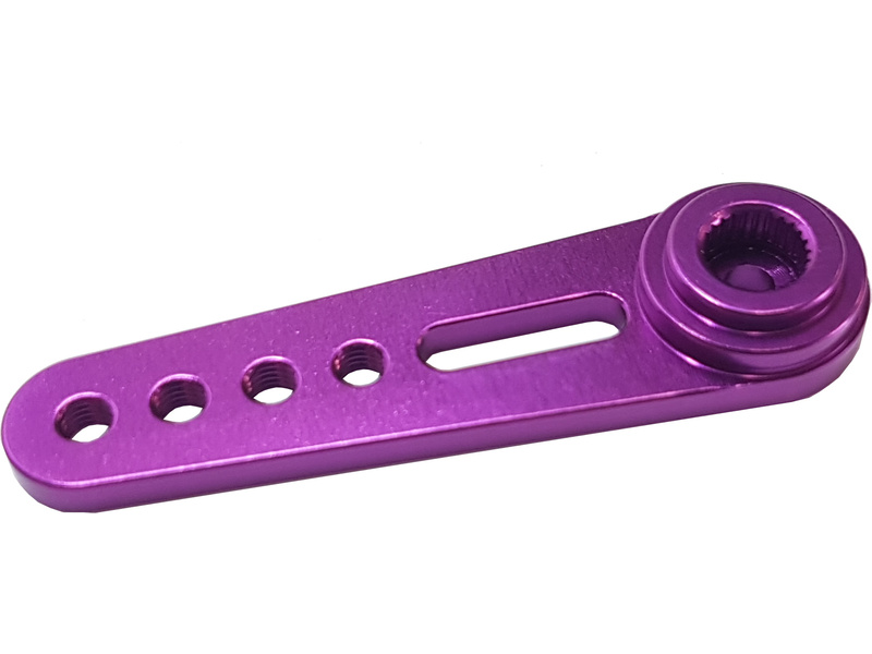 Páka serva hliníková jednostranná velká, pro serva JR, Spektrum, otvory se závitem M3, rozteče 38mm, 33mm, 29mm a 23mm.