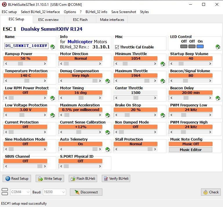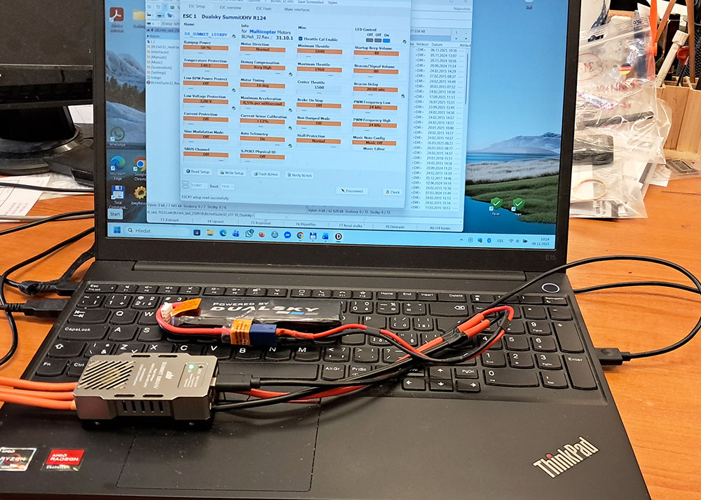 V počítači musí být uložen program BLHeliSuite32 v31.10.0.1. Ten se dá stáhnout např. z webu Dualsky. Údaje pro stažení jsou na konci tohoto popisu.