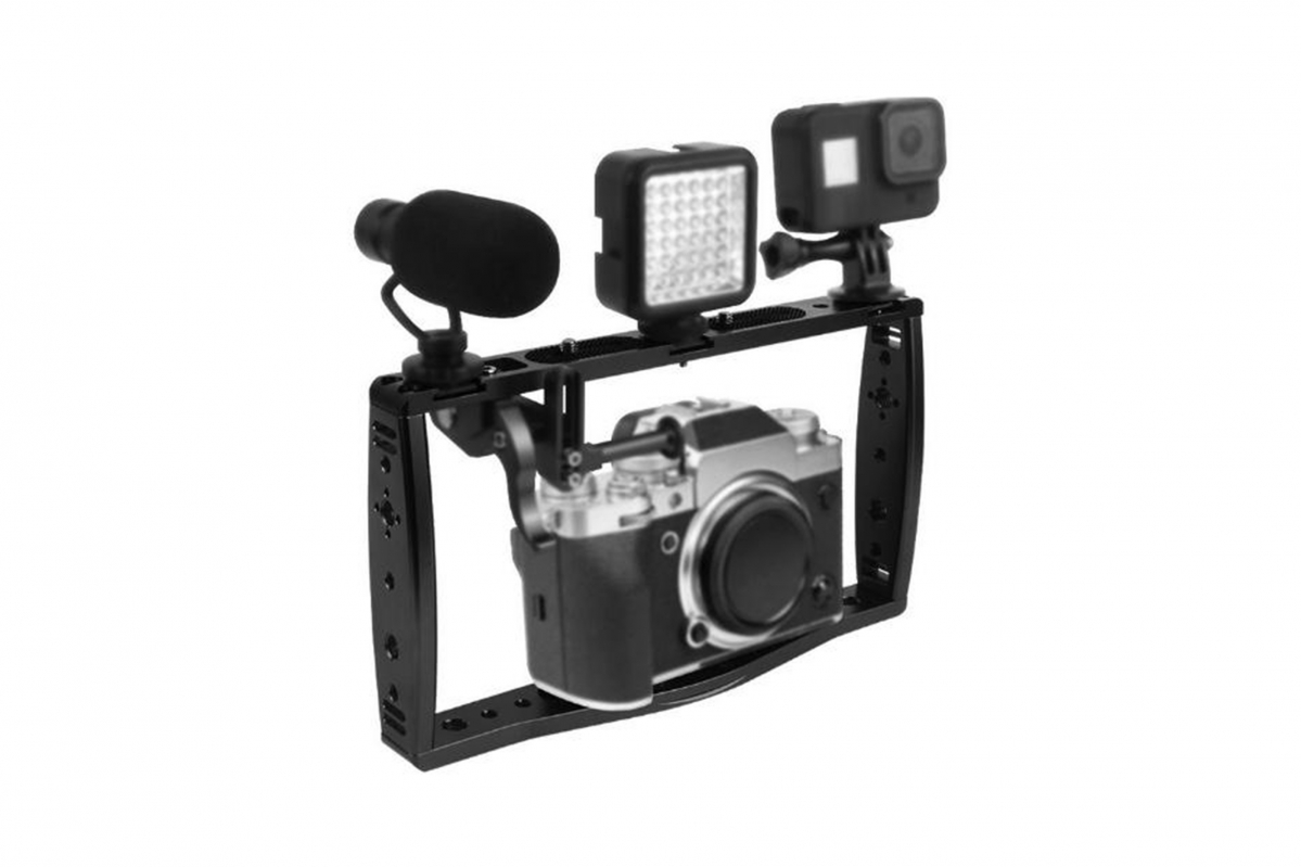CNC držák pro DSLR a ILDC kamery váží 480 g a je vybaven 1/4" šroubem, více 1/4" a 3/8" závity a cold shoe pro široké možnosti připojení příslušenství. Kompatibilní s akčními kamerami, DSLR i ILDC fotoaparáty. Robustní konstrukce zajišťuje pevné uchycení a stabilitu při natáčení. Ideální pomocník pro profesionální i amatérské fotografy a filmaře, kteří chtějí rozšířit své možnosti.