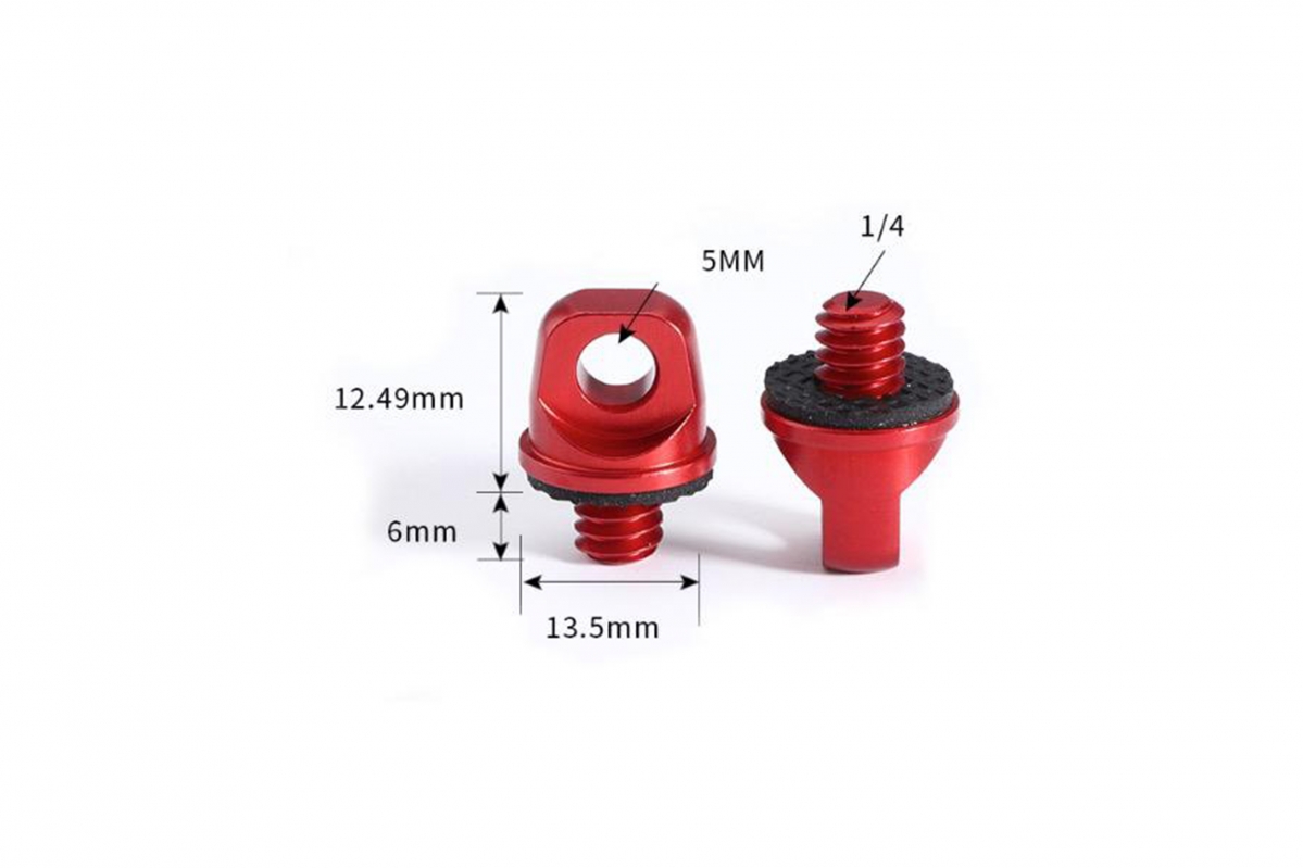 Lehký a odolný šroub s okem na lanko 1/4 palce vyrobený z hliníkové slitiny v elegantní červené barvě. Váží pouhých 2,6 g, ideální pro upevnění fotoaparátů, příslušenství nebo jiných zařízení. Perfektní doplněk pro fotografy, filmaře či outdoorové nadšence. Cena za 1 kus.