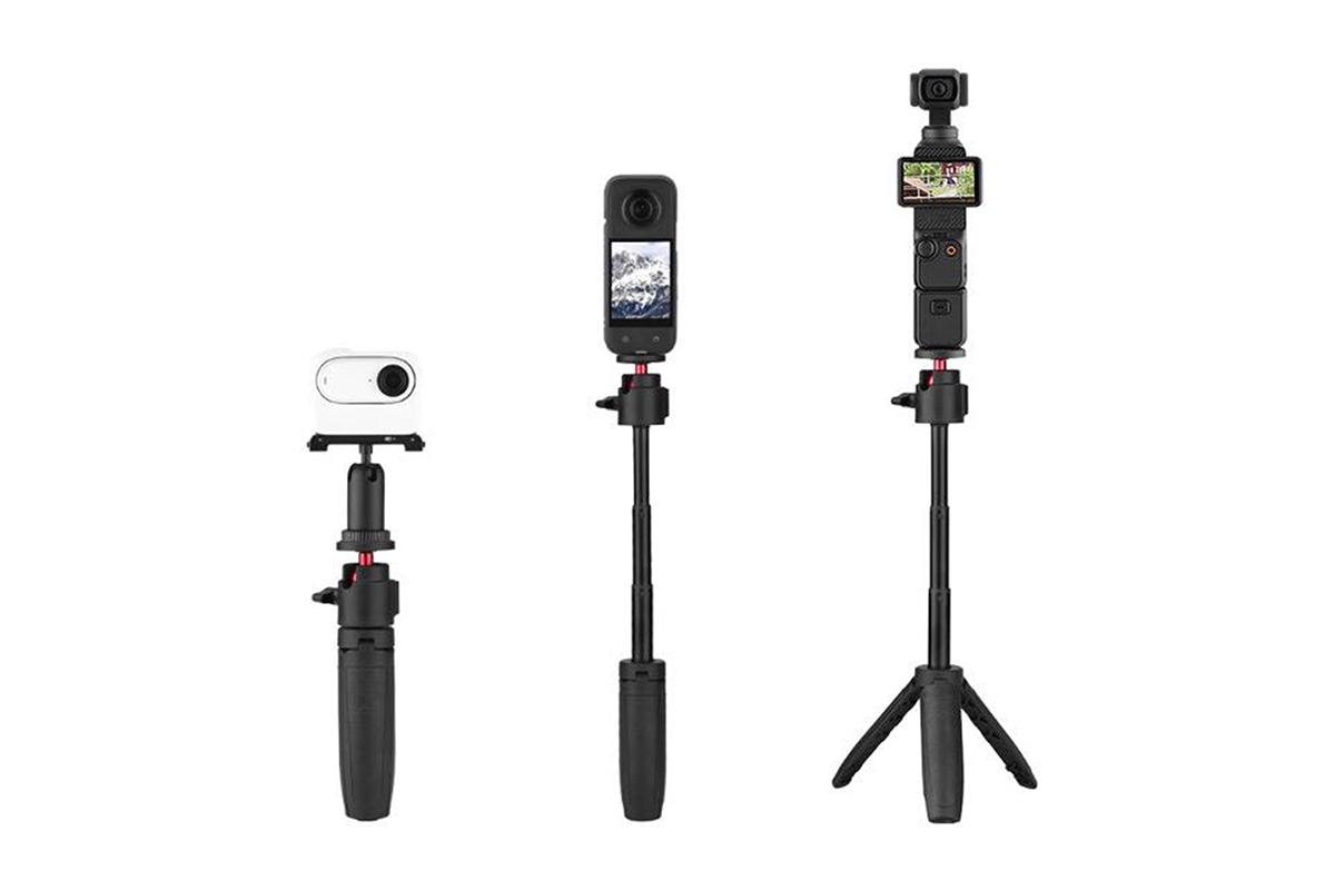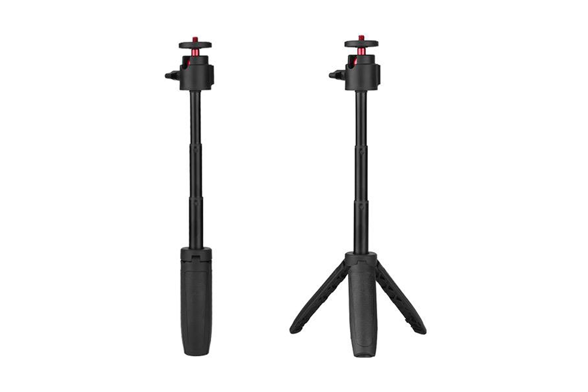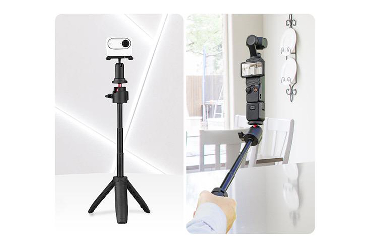 2v1 stativ a prodlužovací tyč pro akční kamery (typ 2) v černé barvě kombinuje lehký ABS a pevnou hliníkovou slitinu. Váží 102,4 g a má kompaktní rozměry 4,6 × 3,1 × 15,8 cm, s možností prodloužení až na 31 cm. Nabízí 360° otočení pro maximální flexibilitu při natáčení. Ideální doplněk pro stabilní a variabilní záběry s vaší akční kamerou.