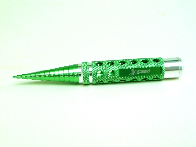 Tento nástroj je určen ke kontrole velikosti vnitřního průměru metrických ložisek a k ověření správného fungování ložiska. Jakmile je ložisko umístěno na nástroj, můžete jej roztočit, abyste zajistili plynulé otáčení. Lze jej také použít k čištění ložiska, když je nainstalováno, a také k jeho mazání před opětovným vložením do vozidla. Nástroj Xceed je rozdělen do 14 kroků s vyrytou velikostí na každém, 2 mm až 15 mm.