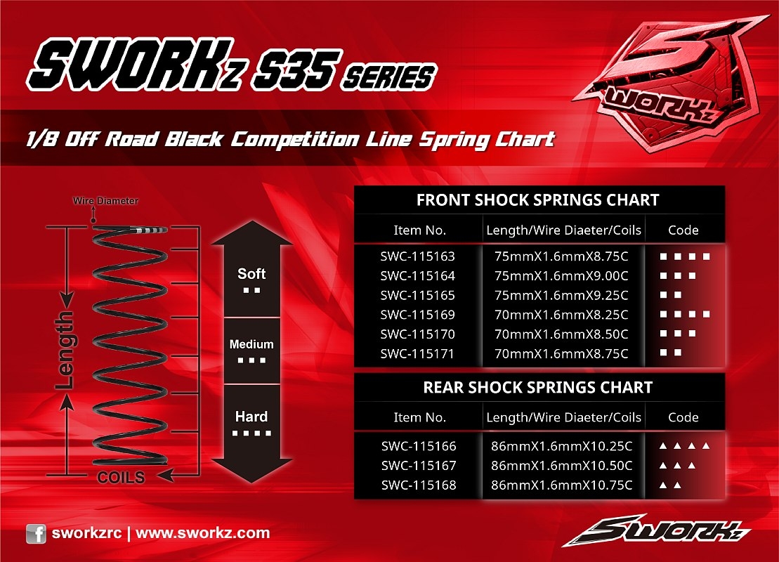 SWC115164 - SWORKz 1/8 BLACK LINE Competition pružiny olej. tlumičů, (M3-Dot)(75x1.6x9.0), 2 ks.