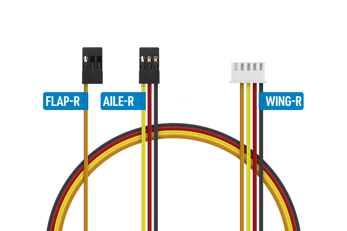 Pár redukčních silikonových kabelů pro zapojení levých a pravých křidélek i klapek do samostaných kanálů, slouží k jejich přesnému nastavení středu a výchylek, umožňuje použití mixů pro křídlo se 4 klapkami. Balení pro pravé i levé křídlo. Náhrada za položku KAV02.8091.9 .