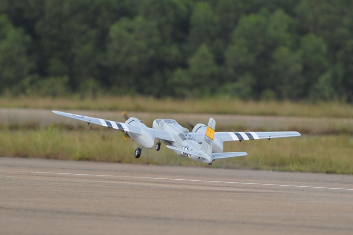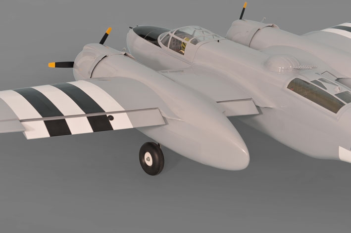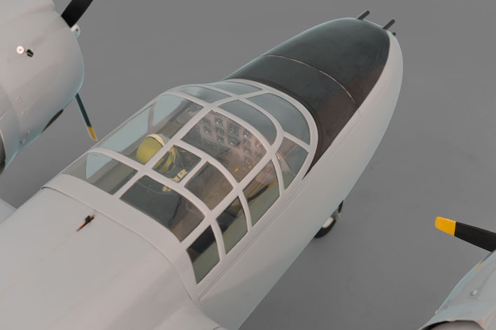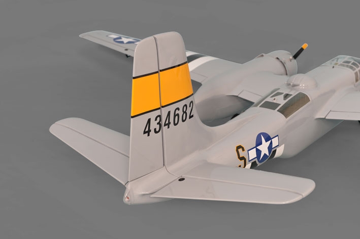 Polomaketa amerického bitevního a lehkého bombardovacího letounu pro pohon dvěma dvoudobými motory 7,5-8,5 ccm nebo střídavými elektromotory třídy FOXY C3520 napájenými ze 4S LiPo akumulátorů. Trup modelu je klasické celobalsové konstrukce; horní část trupu s krytem kabiny je odnímatelná pro snadný přístup k palubní elektronice. Dvoudílné křídlo s polosouměrným profilem (poloviny se nasouvají z boku na duralovou trubkovou spojku) je rovněž klasické konstrukce s torzní skříní. Křidélka a vztlakové klapky jsou ovládány vždy 2 nezávislými servy. Motorové kryty jsou laminátové. Ocasní plochy jsou klasické celobalsové. Celý model je potažen nažehlovací fólií Oracover. Podvozek je tříkolový příďový, pneumatický zatahovací s odpruženými nohami.