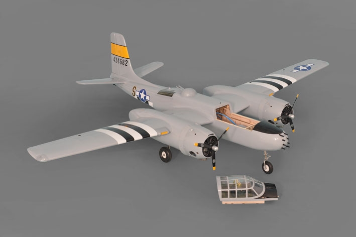 Polomaketa amerického dvoumotorového bombardovací a bitevní letounu o rozpětí 2300mm pro 2 motory 7,5-8,5 ccm nebo střídavé elektromotory třídy FOXY C3520. Konstrukční trup a nosné plochy potažené Oracoverem. Ovládaná křidélka, klapky, směrovka, výškovka, zatahovací podvozek.
