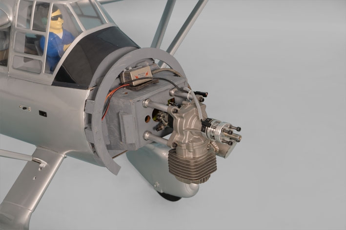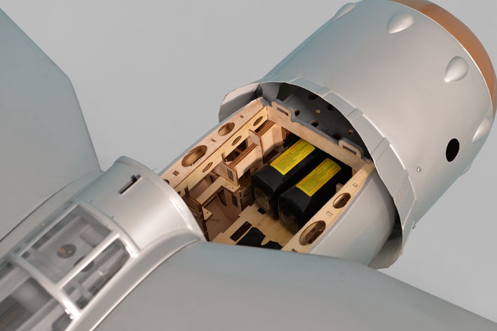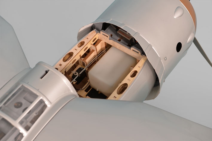 Celý model je potažen stříbřitou nažehlovací fólií Oracover, všechny laminátové díly jsou nastříkané barvami odolnými vůči účinkům paliva.