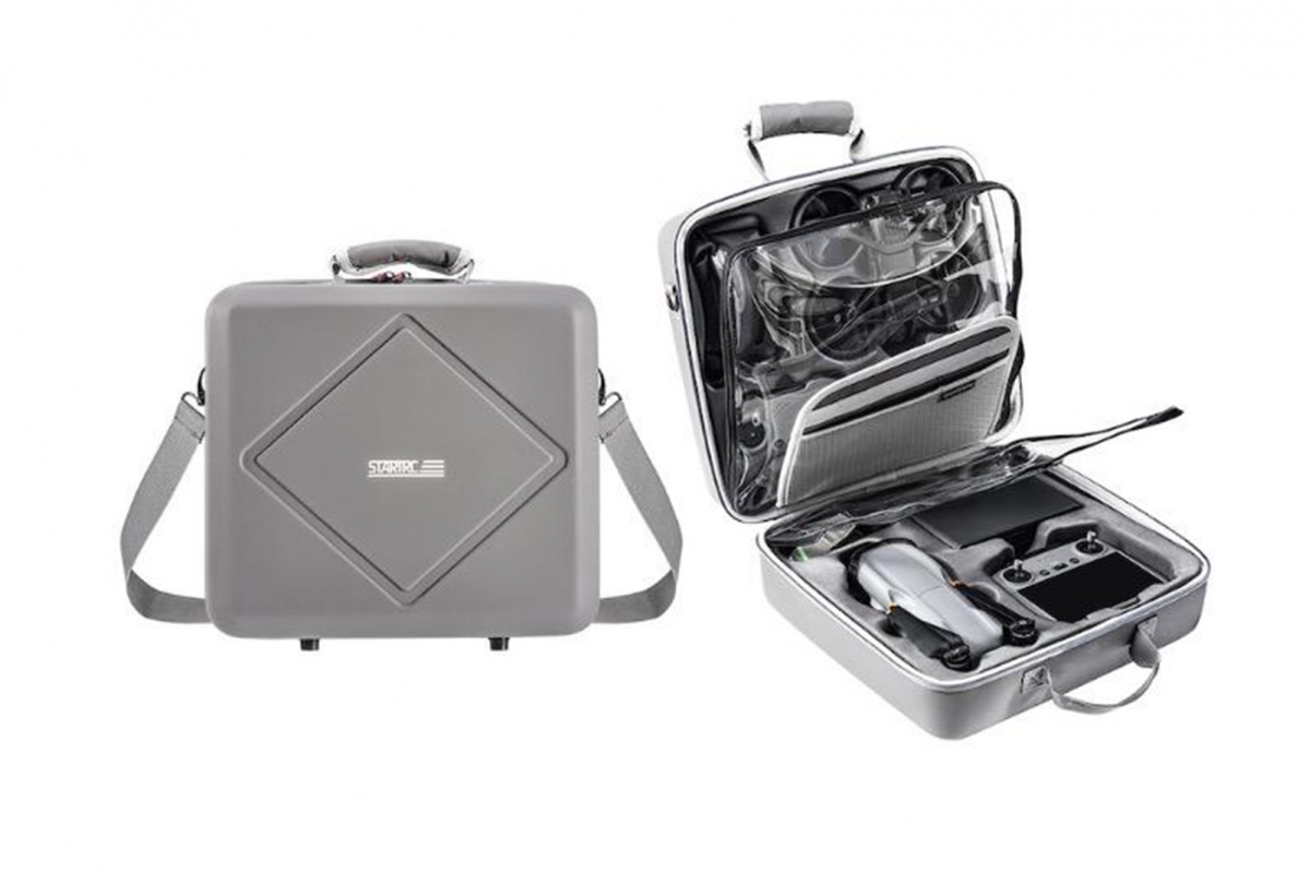 Dvouvrstvé PU pouzdro pro DJI Avata 2 a DJI Air 3S v šedé barvě. Vyrobeno z PU a EVA materiálů, váží 1800 g a má rozměry 350 × 320 × 180 mm. Součástí je ramenní popruh pro pohodlné nošení. Pojme až 2 drony – DJI Avata 2 a DJI Air 3S nebo DJI Air 3. Ideální ochrana a přenosné řešení pro vaše drony.