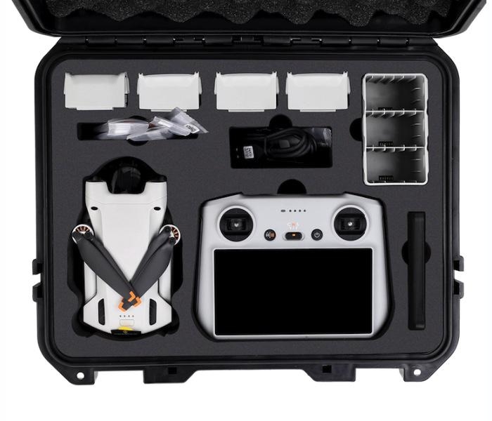 Voděodolný PP kufr pro DJI Mini 3 Pro pojme až 8 baterií. Rozměry 36 × 29 × 12 cm, hmotnost 1657 g. Vyrobený z pevného a odolného materiálu, chrání obsah před vlhkostí a poškozením. Kompatibilní s ovladači DJI RC i DJI RC-N1. Skvělý pro bezpečné a organizované skladování při cestování i každodenním používání.
