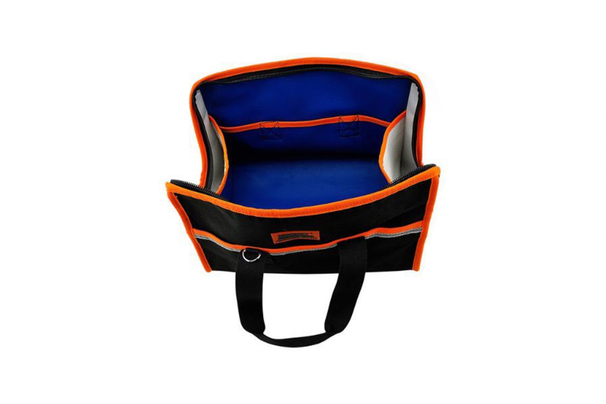 Kompaktní taška na nářadí z odolné tkaniny 600D Oxford v černo-oranžové barvě je ideální pro každodenní použití v dílně i na cestách. Díky nízké hmotnosti (pouze 250 g) a rozměrům 270 × 120 × 150 mm nabízí dostatek prostoru pro základní nářadí a drobnosti, přičemž zůstává snadno přenosná. Pevné provedení zajišťuje dlouhou životnost a odolnost proti opotřebení. Skvělá volba pro domácí kutily i profesionály, kteří potřebují mít své nástroje vždy po ruce (Nářadí není součástí balení)