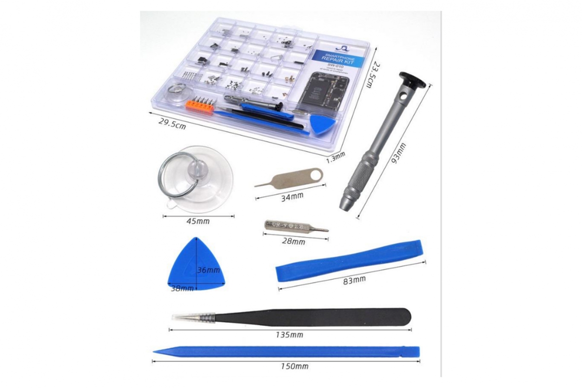 14v1 sada nástrojů pro opravu chytrých telefonů v praktickém boxu obsahuje bity z kvalitní CRV oceli a ergonomickou rukojeť z hliníkové slitiny. Celková hmotnost sady je 141 g a rozměry 29,5 × 23,5 × 1,3 cm zajišťují kompaktní a snadné přenášení. Ideální pro precizní opravy a údržbu mobilních zařízení, nabízí všechny potřebné nástroje na jednom místě pro rychlou a efektivní práci.