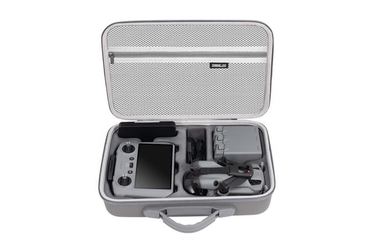 Stylové šedé pouzdro z PU materiálu pro DJI Mini 5 Pro s ovladačem RC 2 spojuje elegantní vzhled s praktickou ochranou. Odolná kombinace PU a EVA materiálů chrání dron a příslušenství před nárazy a poškozením. Vnitřní uspořádání zajišťuje bezpečné uložení všech součástí. S rozměry 350 × 250 × 90 mm a hmotností 765 g je pouzdro dostatečně prostorné, ale stále snadno přenosné. Ramenní popruh zajišťuje pohodlné nošení při cestování i každodenním používání. Kompatibilní s ovladačem DJI RC 2.