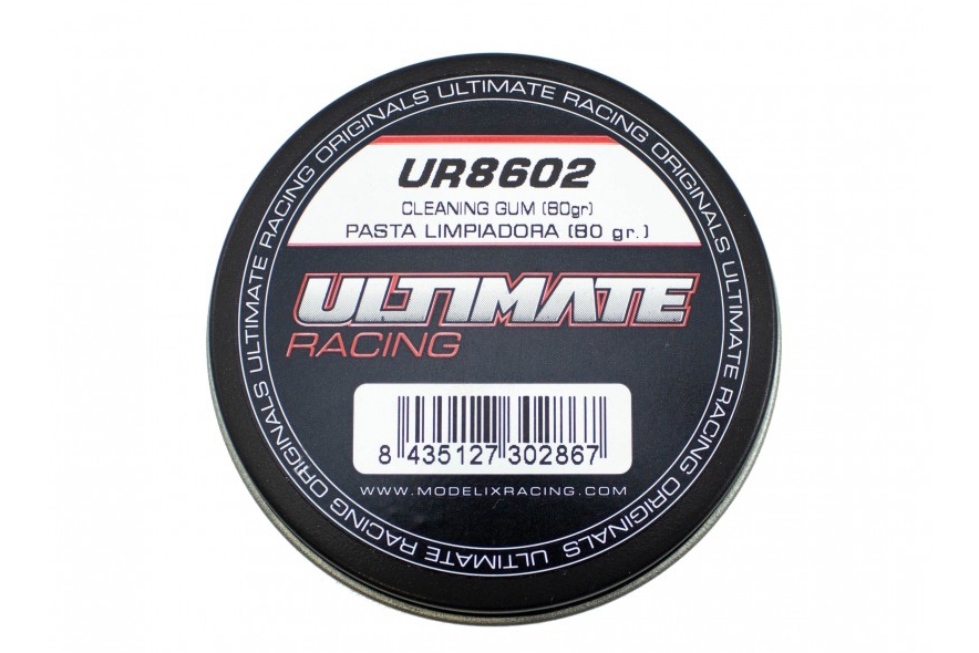 Toto je čisticí guma od společnosti Ultimate Racing. Jedná se o syntetický a lepivý tmel, který vám pomůže snadno odstranit nečistoty, prach, olej nebo mastnotu, které váš vůz nasbíral na trati. Guma je skvělá i pro čištění motoru a výfuků. Při použití čisticí gumy ji nejprve hněťte v rukou, dokud se guma nestane tvárnou, a poté ji vytvarujte do malé kuličky. Poté žvýkačku přitiskněte na znečištěný úsek a poté ji odtáhněte, abyste odstranili všechny nečistoty a špínu; opakujte, dokud nebude úsek zcela čistý. Pokud zůstanou zbytky žvýkačky, stačí žvýkačku znovu přitlačit na zbytky a ty se odstraní. Pro odstranění nečistot z gumy ji stačí znovu promíchat, nečistoty se vstřebají a je připravena k dalšímu použití.