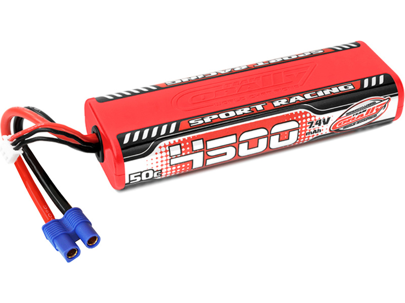 LiPo akumulátor Corally Sport Racing pro RC modely aut. Kapacita 4500 mAh, napětí 7.4 V, 50C. Hardcase provedení, rozměry 25 x 46 x 139 mm, konektor EC3.