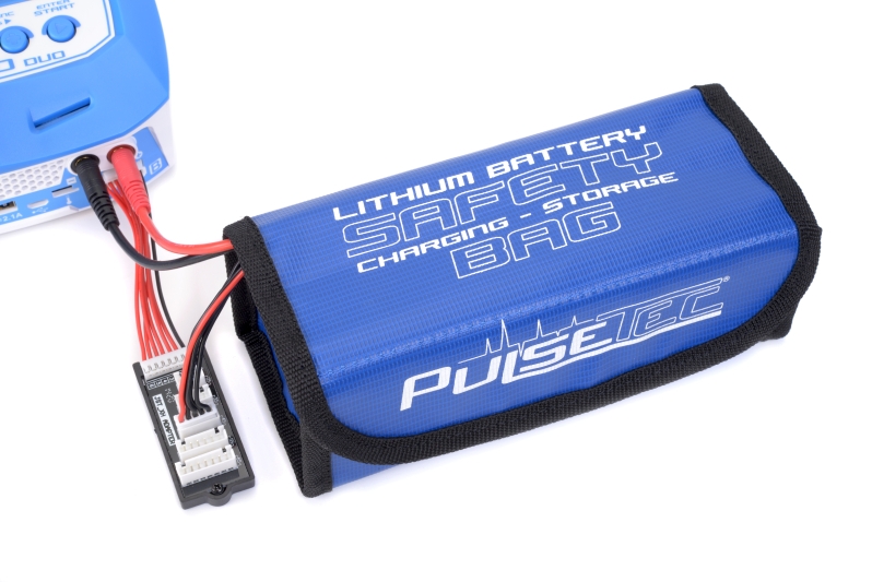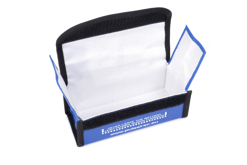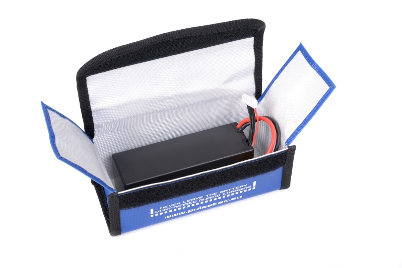 Ochranný obal pro přepravu, uskladnění a nabíjení na závodech LiPo sad. Rozměr je 19x7,5x8cm, obal je vyroben z nehořlavé textilie.