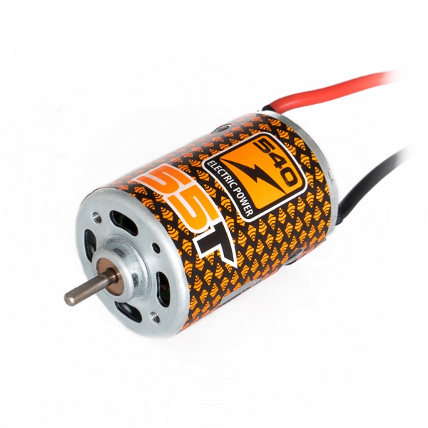 55 závitový stejnosměrný motor. Pruměr: 36mm, délka 57mm, motorová hřídel 3,175mm, provozní napětí: 4,8-9,6V (4-8 NiCd/NiMH nebo 2S LiPo)