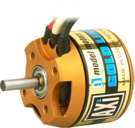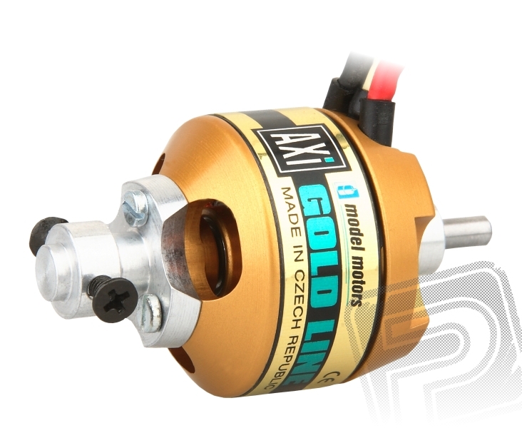 Malý a i přes velice robustní konstrukci velmi lehký (57g včetně silových vodičů) bezkomutátorový motor s otočným pláštěm, vhodný pro pohon modelů třídy Slow a Park Fly do hmotnosti 600 g, který překvapí svými výkony. Kalená hřídel o pr. 3,17mm je uložena ve dvou velkých kuličkových ložiskách zajišťujících velmi dobrou mechanickou stabilitu při normálním i obráceném způsobu montáže. Díky použití nejnovějších feromagnetických materiálů dosahují motory řady AXI 22xx/xx GOLD LINE v této váhové třídě neobvykle vysokých účinností a možnost velkého proudového zatížení. AXI GOLD LINE svojí vysokou kvalitou zpracování, spolehlivostí a technickými parametry představují to nejlepší ze současné nabídky na trhu. Výhodou je možnost obrácené montáže na trup modelu za použití "sady pro obrácenou montáž", která obsahuje: montážní přírubu, zajišťovací kroužek, unášeč vrtule s podložkou a spojovací materiál.