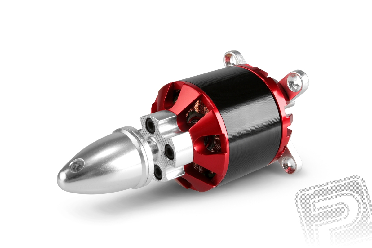 Střídavý motor s rotačním pláštěm pro pohon motorových modelů a větroňů, které byste jinak poháněli spalovacími motory 6,5 ccm. Motor je primárně určen pro montáž za přední čelo, vrtule se na hřídel upevňuje pomocí klasického unašeče nebo kuželu. Motor je určen pro přímý náhon vrtule. Při přední montáži za čelo motoru použijte čtyři šrouby M3, které zasahují do čela motoru v rozmezí 4-5 mm. Motorová přepážka by měla být z 5-6 mm letecké překližky spolehlivě ukotvené do trupu.