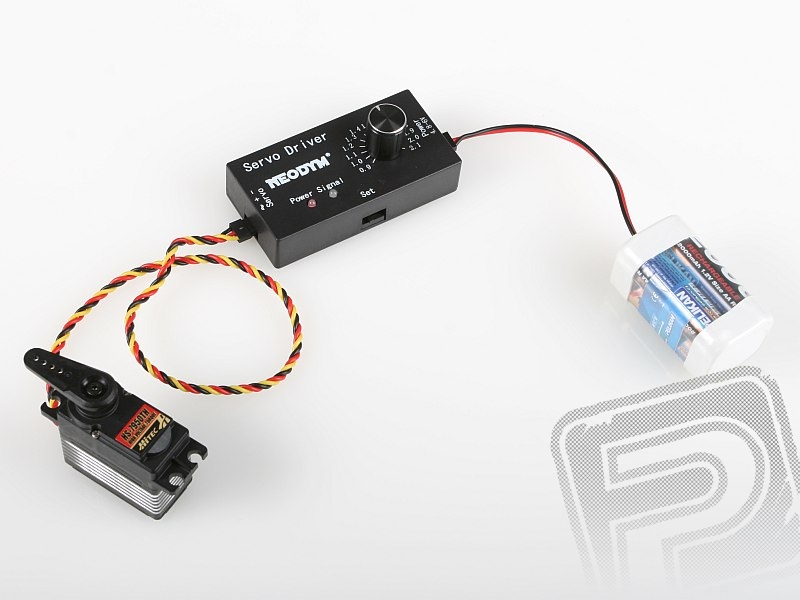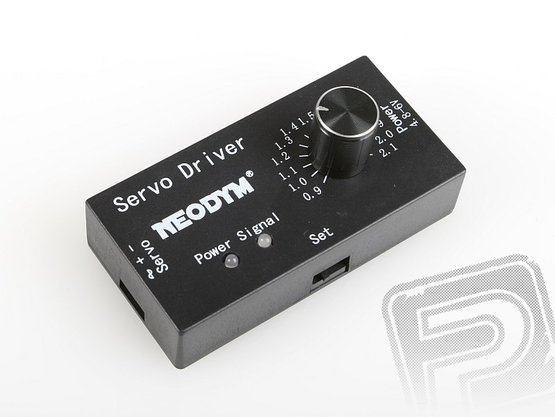 Servotester/zdroj řídícího signálu pro RC zařízení s ručně nastavitelnou šířkou řídících impulsů ve dvou rozsazích (1.0-2.0 ms a 0.9-2.1 ms).