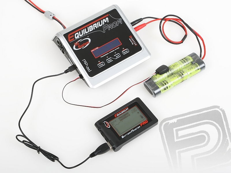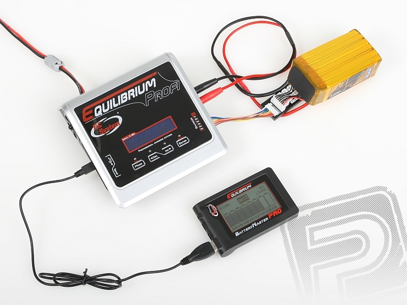 Po připojení k nabíječi Equilibrium PROFI (USB kabelem) nebo Equilibrium 3.0 (s pomocí doplňkové sady Equilibrium 3.0 USB Kit) BatteryMaster PRO rozšiřuje možnosti nabíječe o možnost zobrazování křivek průběhu celkového proudu a napětí a porovnání napětí na jednotlivých článcích sady (v podobě sloupcového grafu) v průběhu nabíjení/vybíjení. Tímto způsobem získáte podrobné informace o chování vašeho akumulátoru.