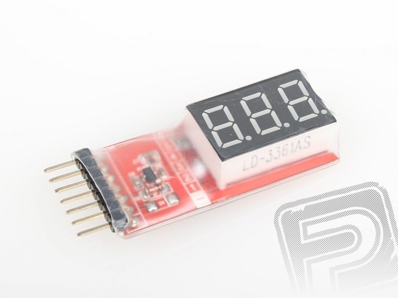 Miniaturní digitální měřič celkového napětí a napětí na jednotlivých článcích Li-poly sad 1-6s.