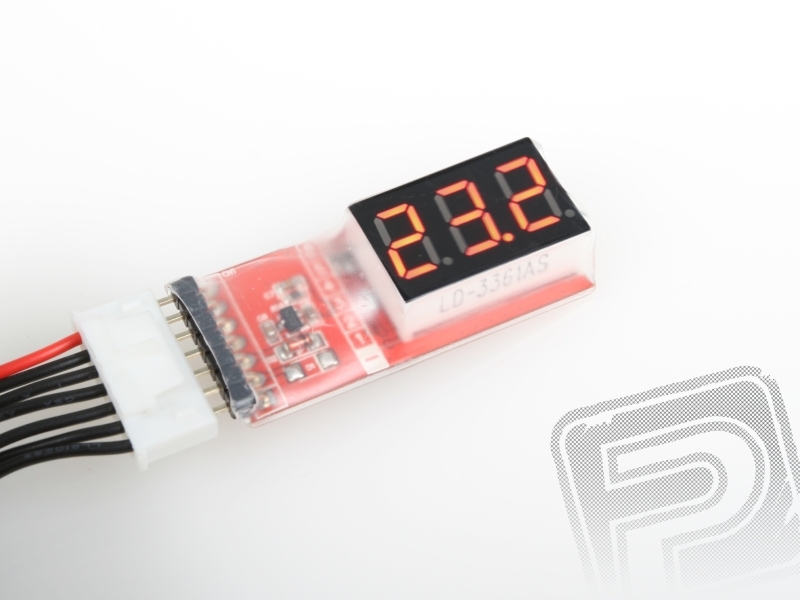 BatteryMaster Light je miniaturní digitální voltmetr s třímístným LED sedmisegmentovým displejem schopný měřit a zobrazovat napětí jednotlivých článků v Li-poly, Li-ion a Li-Fe akumulátorových sadách. Stačí připojit servisní konektor sady ke vstupu BatteryMasteru Light a ten ihned začne zobrazovat napětí jednotlivých článků i celkové napětí sady. BatteryMaster Light je možno použít pro sady s až 6 články v sérii.