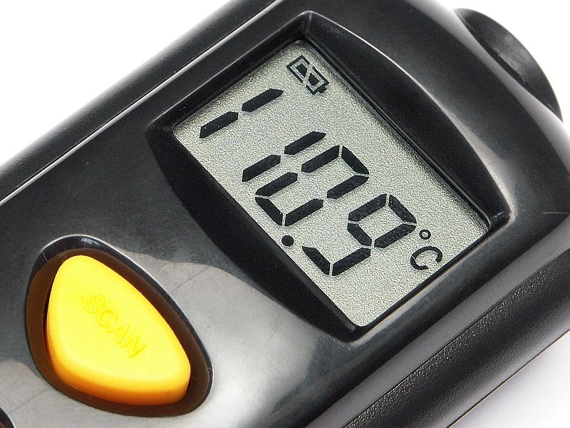 Infračervený teploměr HPI Temp Gun je bezkontaktní teploměr speciálně zkonstruovaný pro měření teploty modelářských spalovacích motorů, elektromotorů, regulátorů otáček, akumulátorů, nabíječů atd. od -55°C do 220°C. Při měření teploměr jednoduše namiříte na povrch předmětu v místě, jehož teplotu chcete znát, a stisknete tlačítko pro odečtení teploty na velkém LCD displeji!