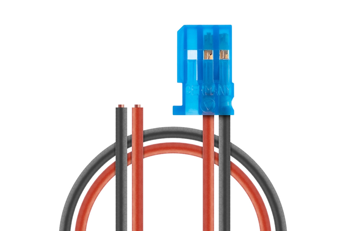 Silný plochý dvoužilový napájecí kabel s konektory Futaba o délce 200 mm se silikonovou izolací, průřez vodičů 0,50 mm2. Vyrobeno v Německu.