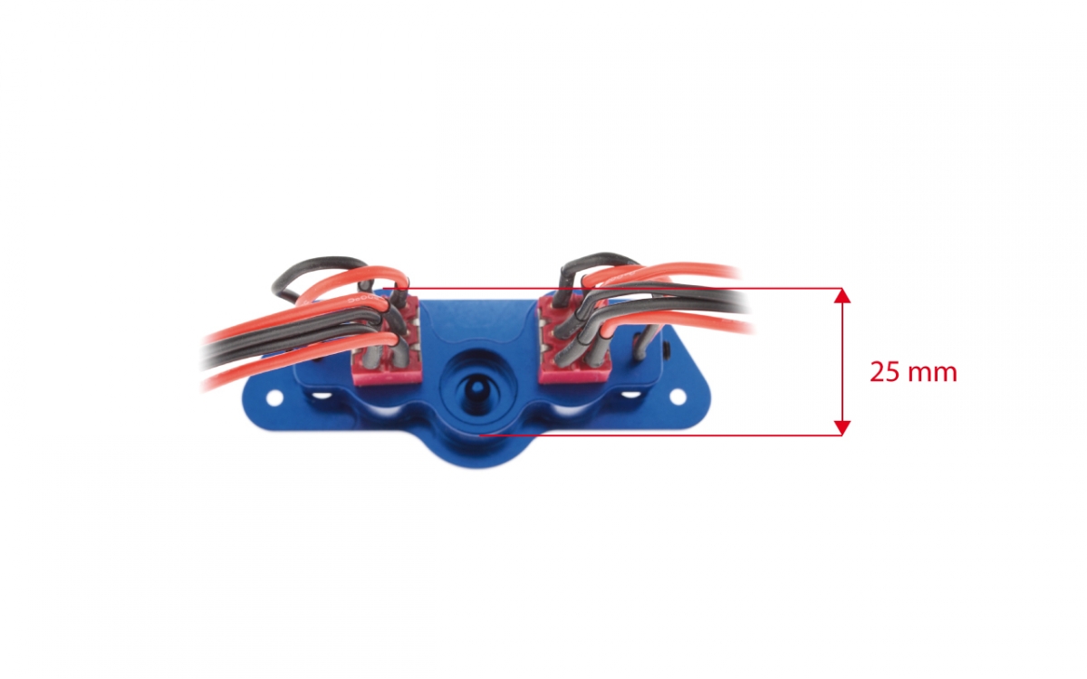 Konektory kompatibilní s JR a Futabou. Váha 58g vč. kabelů. Délka kabelů je 22cm. Ostatní rozměry a potřebné údaje pro instalaci jsme zahrnuli do fotografie.