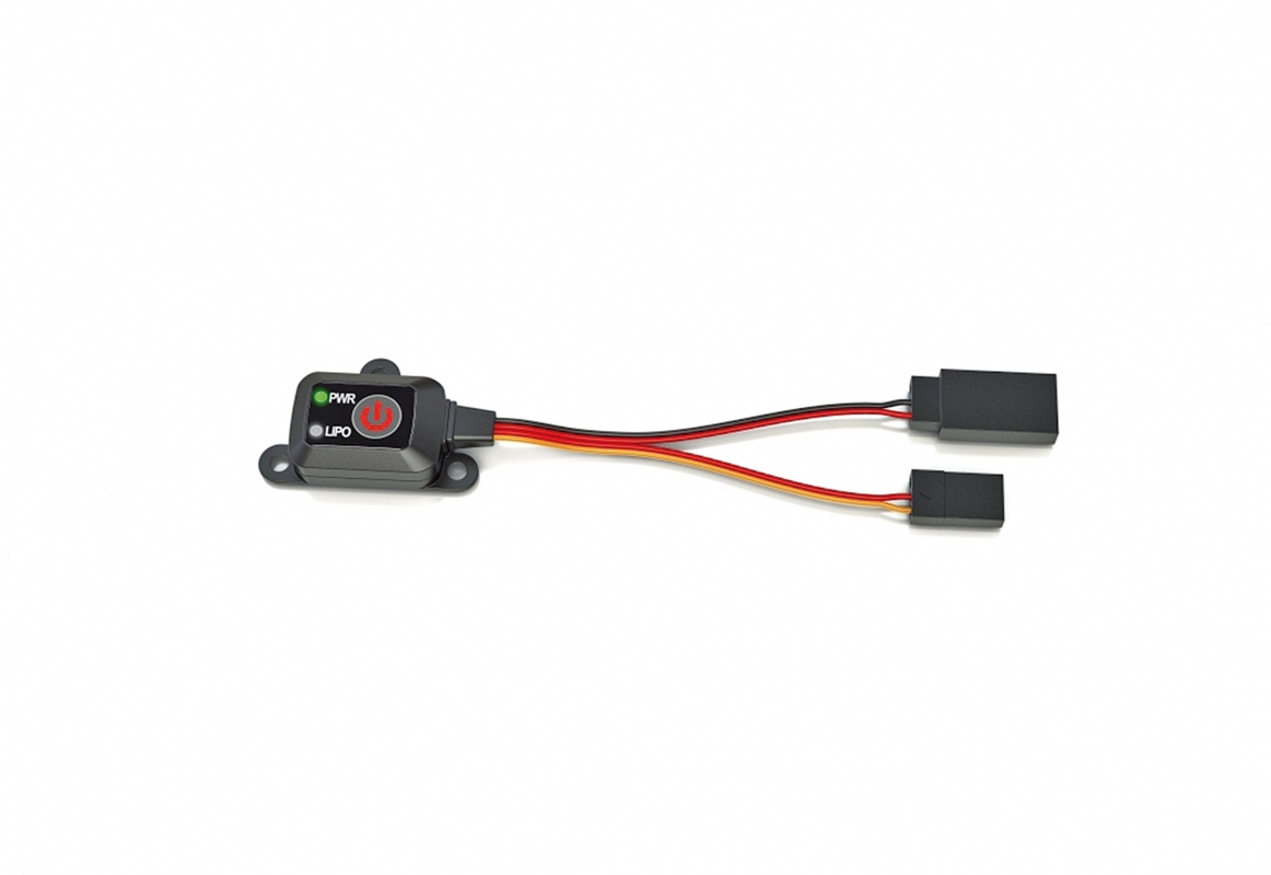 Miniaturní elektronický vypínač pro přijímačové akumulátory 4-12 V s NiCd/NiMH a LiPo režimem s LED indikátorem stavu nabití. Ochrana proti hlubokému vybití v LiPo režimu. Ideální především pro RC auta, vč. držáku "čipu" pro počítání kol.
