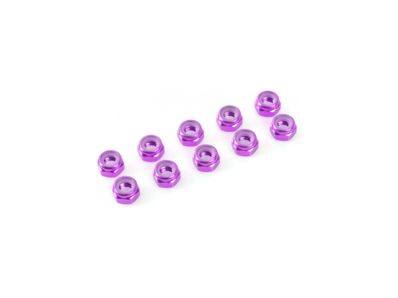Samojistná hliníková matice M2 fialově eloxovaná. Balení obsahuje 10 ks.