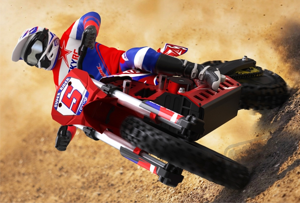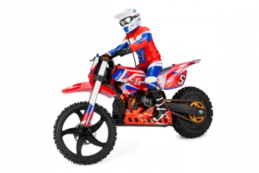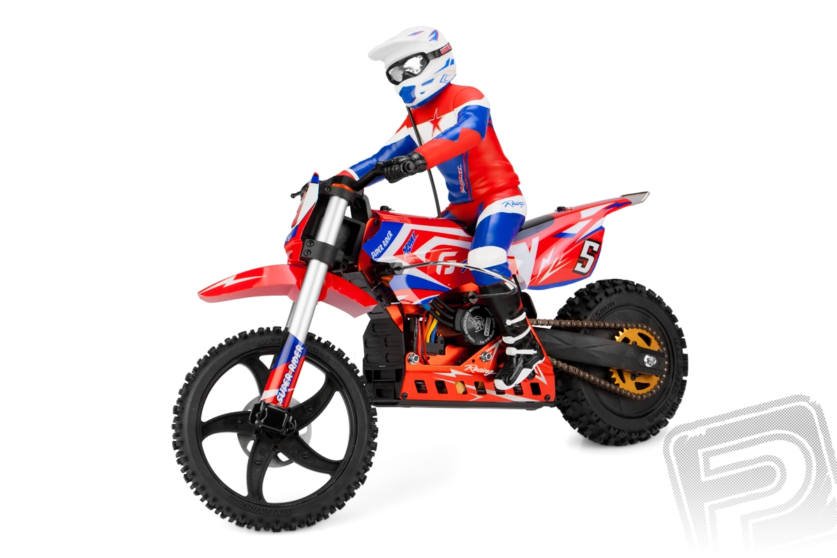 Motokrosový speciál v měřítku 1/4 ve verzi RTR kompletně připraven k jízdě. Nabijte baterie, vložte do modelu a vyražte do terénu. Stabilní i při malé rychlosti, skoky zvládá levou zadní.