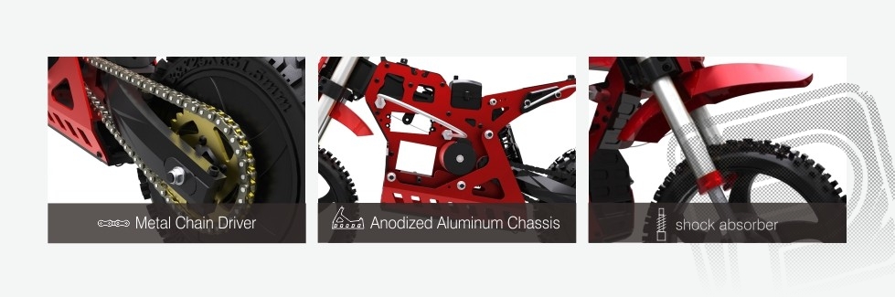 Základem motocyklu je pevný kovový rám. Zadní hlavní tlumič je olejový a pohon na zadní kolo je přenášen pomocí kovového řetězu. Pneumatiky s univerzálním dezénem zvládají všechny druhy povrchů.