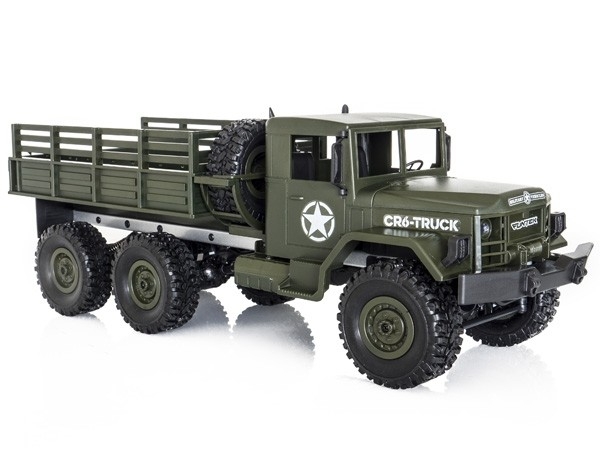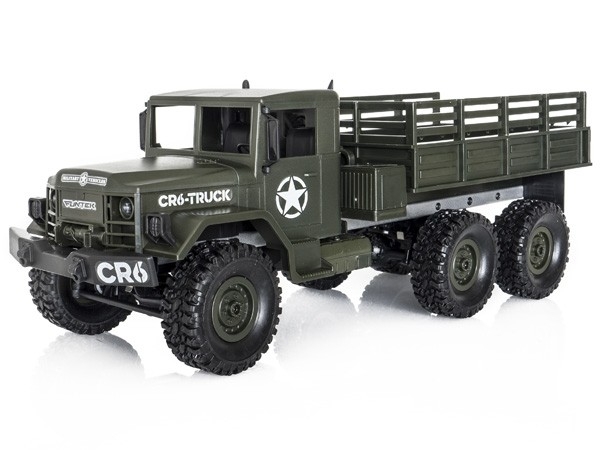 CR6 je dálkově ovládaný nákladní vůz v čistě vojenském stylu. Toto vozidlo v měřítku 1/16 se nebojí skutečného terénu. Do korby je možné naložit a vézt náklad o hmotnosti až 0,6 kg ! Model sestaveného nákladního vozu, který zaujme pěknou karoserii s mnoha detaily (světlomety, zadní světla, zrcátka, spony, navijáky, gumové pneumatiky s terénním vzorkem).
