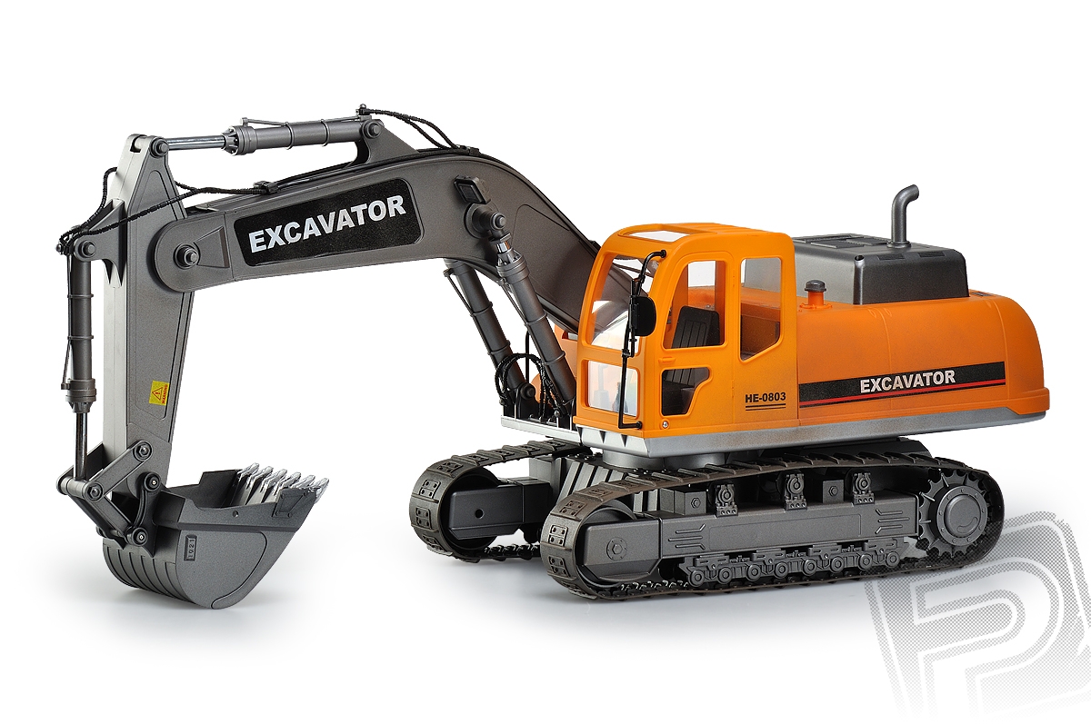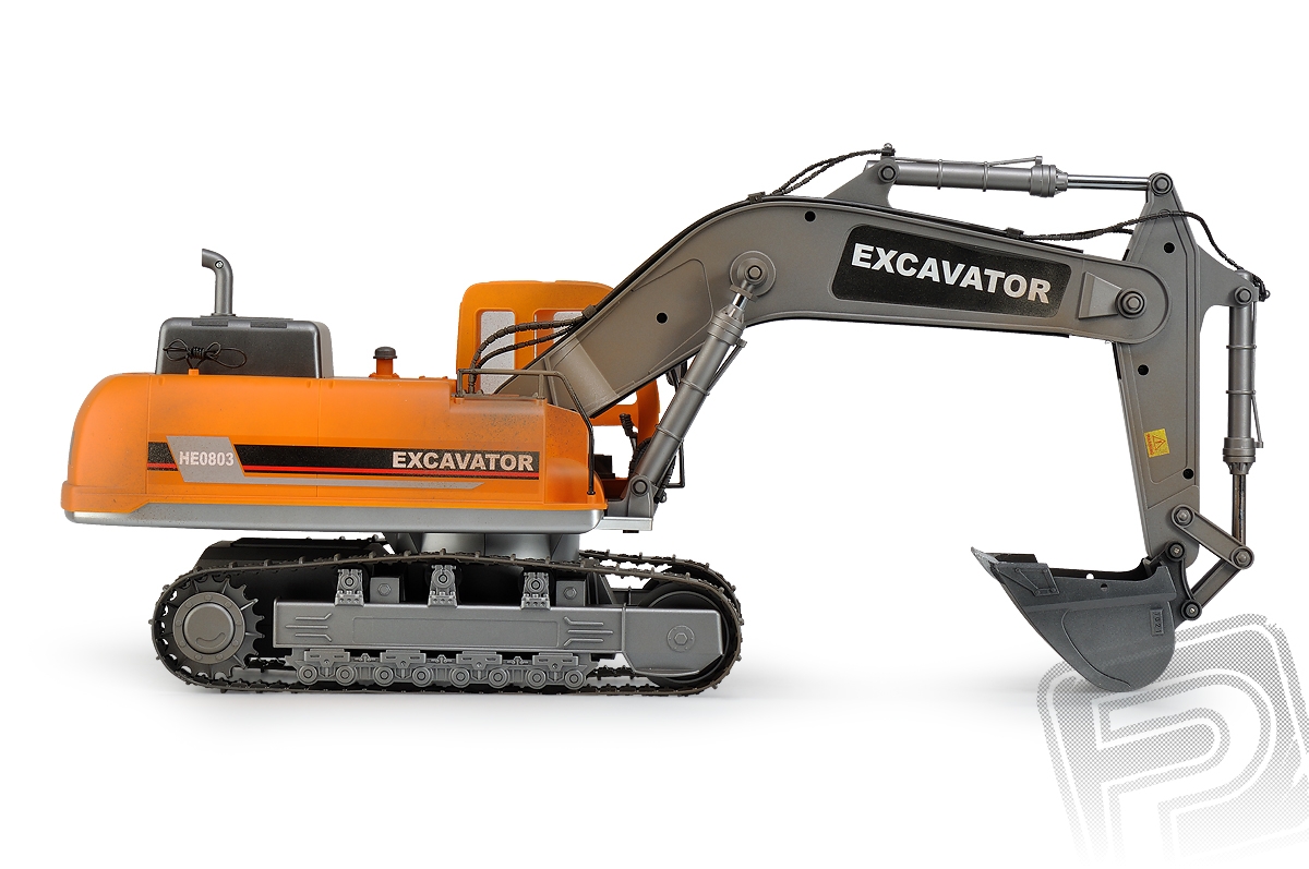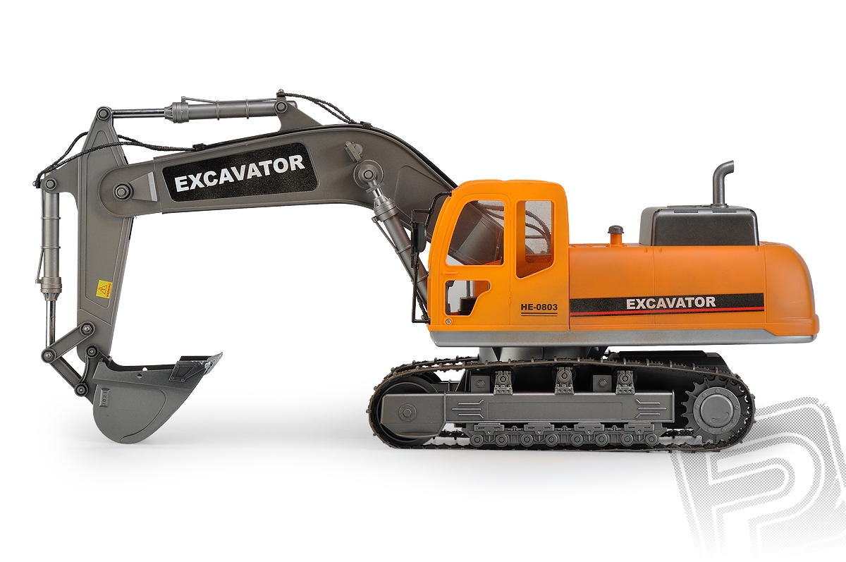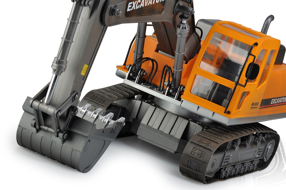 RC model Excavator - lžícový bagr v měřítku 1:12 s elektrickým pohonem věrně provádí většinu funkcí skutečného bagru na pásovém podvozku. Je vybaven realistickým podvozkem s pásy z pružného plastu, s hnacími, pojezdovými a napínacími koly, které umožňují jízdu vpřed i vzad, zatáčení vlevo a vpravo při jízdě vpřed i vzad. Nechybí ryze "tanková vychytávka" - otáčení na místě pomocí protiběžného pohybu pásů. Plně funkční je samozřejmě rameno se lžící bagru umožňující nabírat a zase vyklápět sypké materiály. Mechanismus ramene a lžíce je vybaven třecími spojkami, které chrání pohonný mechanismus před přetížením. Pro práci na noční směně je bagr vybaven funkčními světly, na lžíci vám posvítí silný reflektor umístěný na rameni.