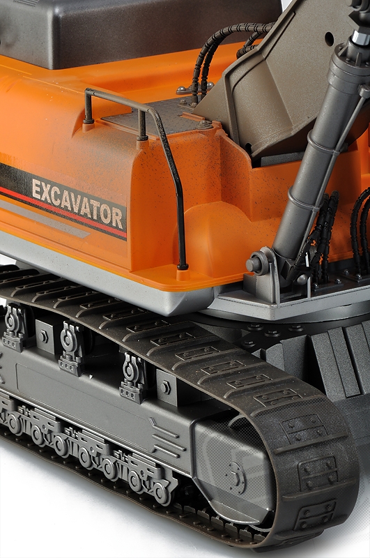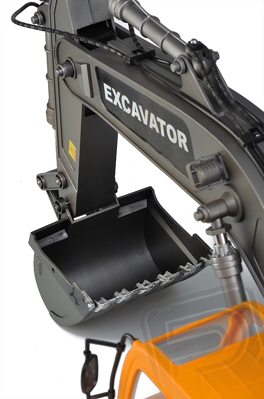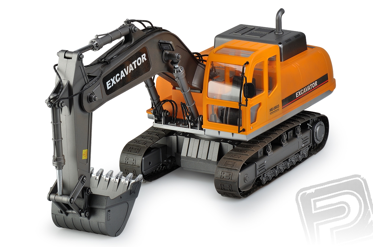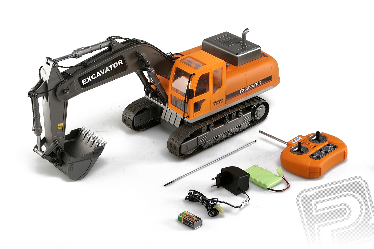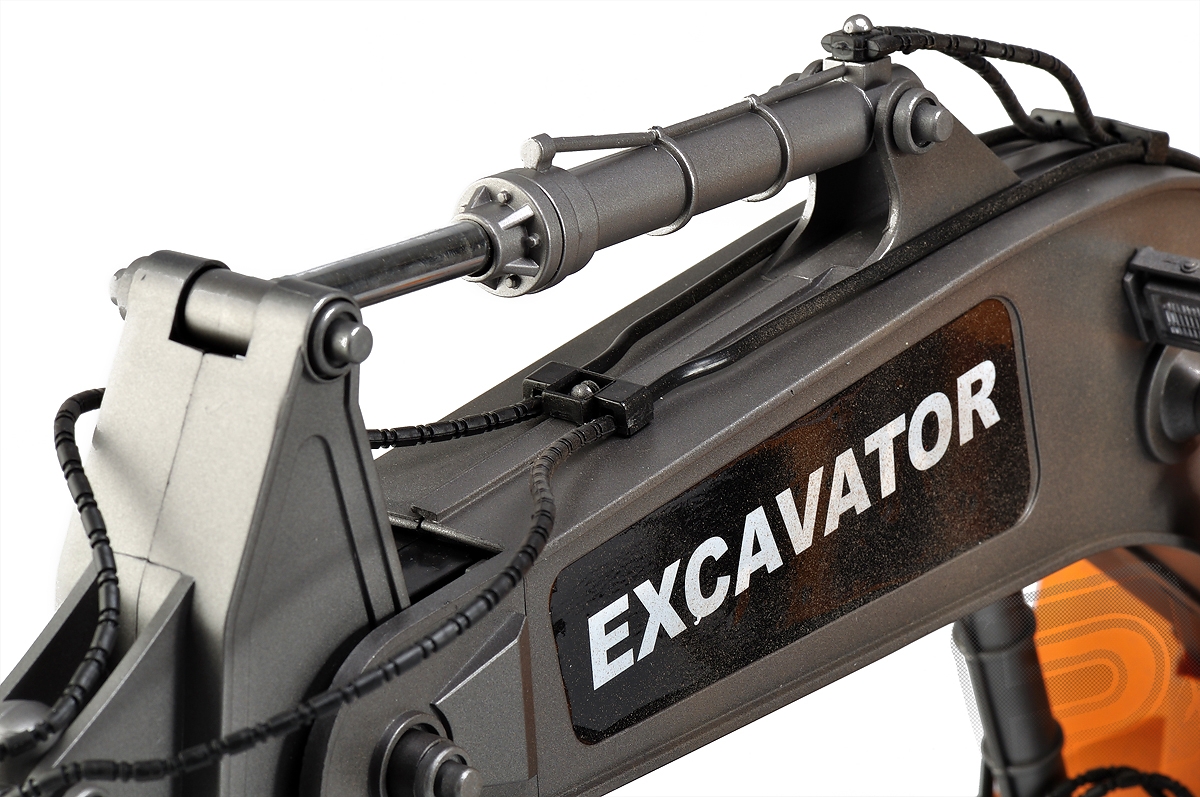 RC model Excavator - lžícový bagr v měřítku 1:12 s elektrickým pohonem věrně provádí většinu funkcí skutečného bagru na pásovém podvozku. Je vybaven realistickým podvozkem s pásy z pružného plastu, s hnacími, pojezdovými a napínacími koly, které umožňují jízdu vpřed i vzad, zatáčení vlevo a vpravo při jízdě vpřed i vzad. Nechybí ryze "tanková vychytávka" - otáčení na místě pomocí protiběžného pohybu pásů. Plně funkční je samozřejmě rameno se lžící bagru umožňující nabírat a zase vyklápět sypké materiály. Mechanismus ramene a lžíce je vybaven třecími spojkami, které chrání pohonný mechanismus před přetížením. Pro práci na noční směně je bagr vybaven funkčními světly, na lžíci vám posvítí silný reflektor umístěný na rameni.