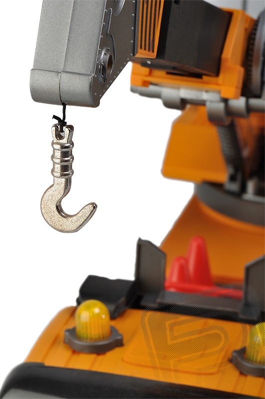 Jakmile zajedete na místo, kde hodláte s jeřábem pracovat, přepněte na režim jeřábový. Z boků auta ručně vysuňte dva páry opěr. Nyní dvojicí tlačítek vlevo na vysílači můžete ovládat zvedání a spouštění ramene, které můžete prodlužovat nebo zkracovat vysouváním teleskopické části (ovládá se levým pákovým ovladačem). Celou plošinou můžete otáčet vlevo nebo vpravo (o cca 340°) pomocí dvou pravých tlačítek. Všechny mechanismy jsou proti přetížení a pohybu za mechanický limit chráněny třecími spojkami - pokud se např. pohyb ramene zastaví, a vy uslyšíte cvakavý zvuk, dosáhli jste maximální meze pohybu v daném směru.