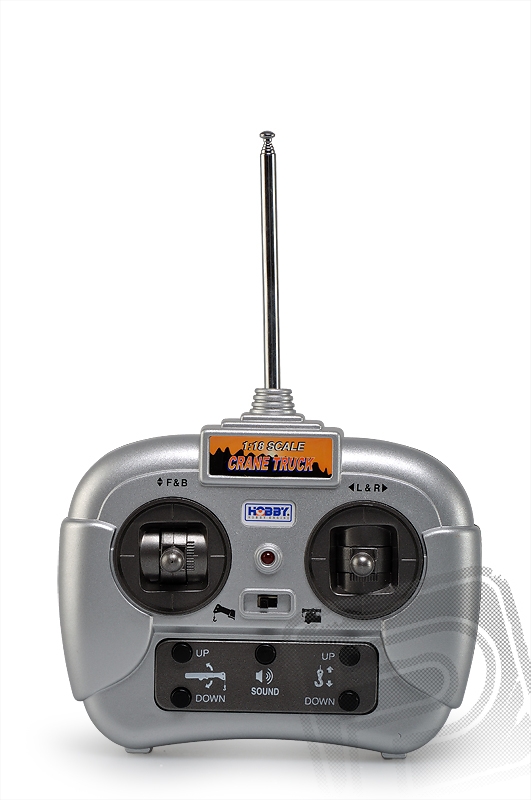 Vysílač dodávaný s modelem má dva pákové ovladače a pět tlačítek, které ovládají autojeřáb ve dvou režimech - jízdním a jeřábové. Pro přepínání mezi režimy slouží posuvný přepínač na vysílači.