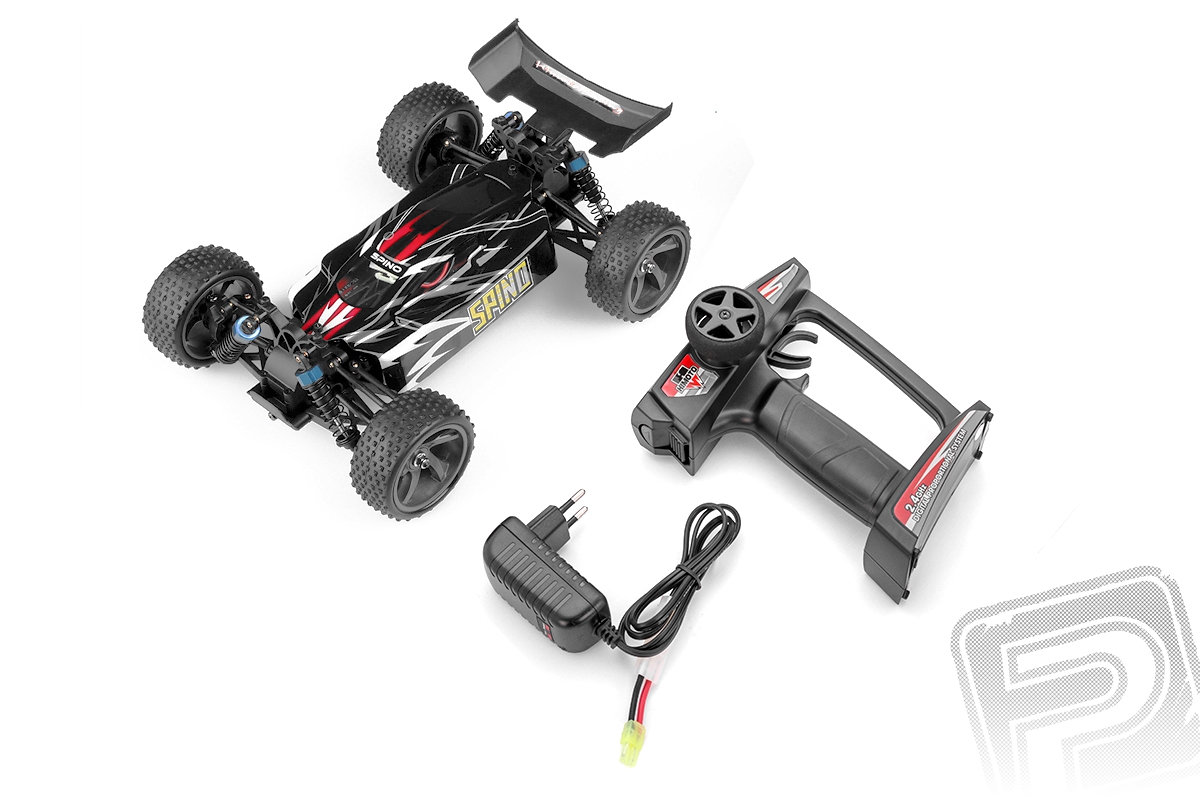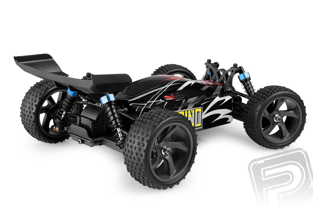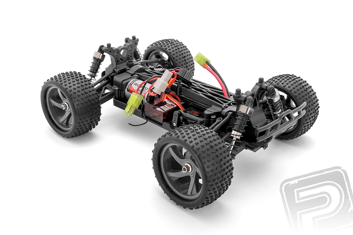 Model Buggy v měřítku 1:18 poháněný stejnosměrným motorem velikosti "380" s náhonem 4WD je dodáván v setu včetně RC soupravy 2,4Ghz, pohonného akumulátoru NiMh 800mAh/7,2V a nabíječe.