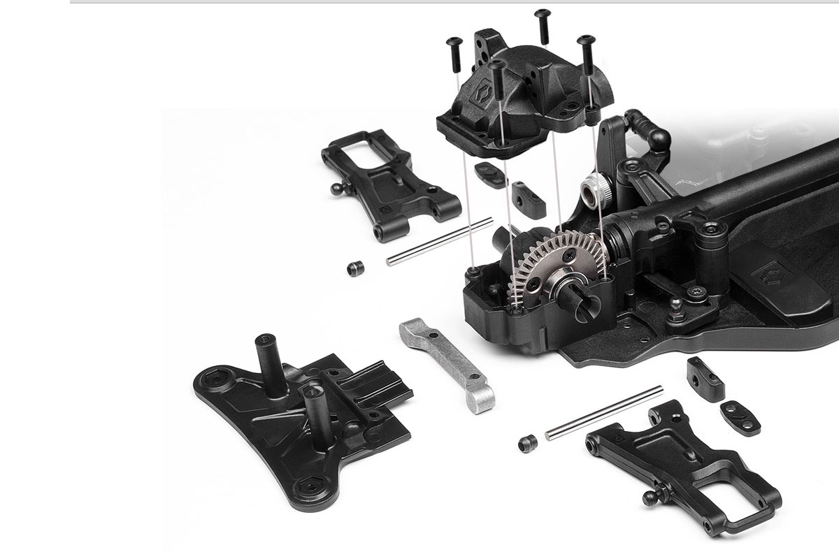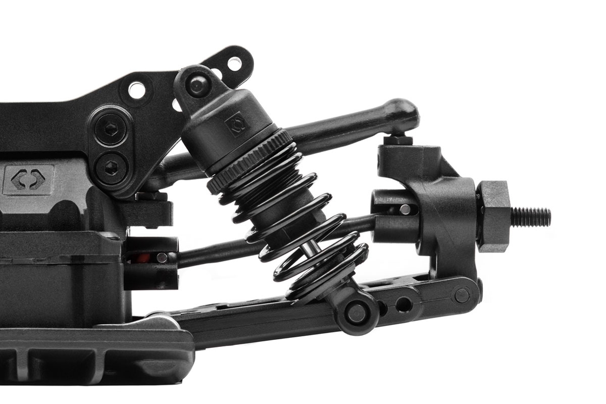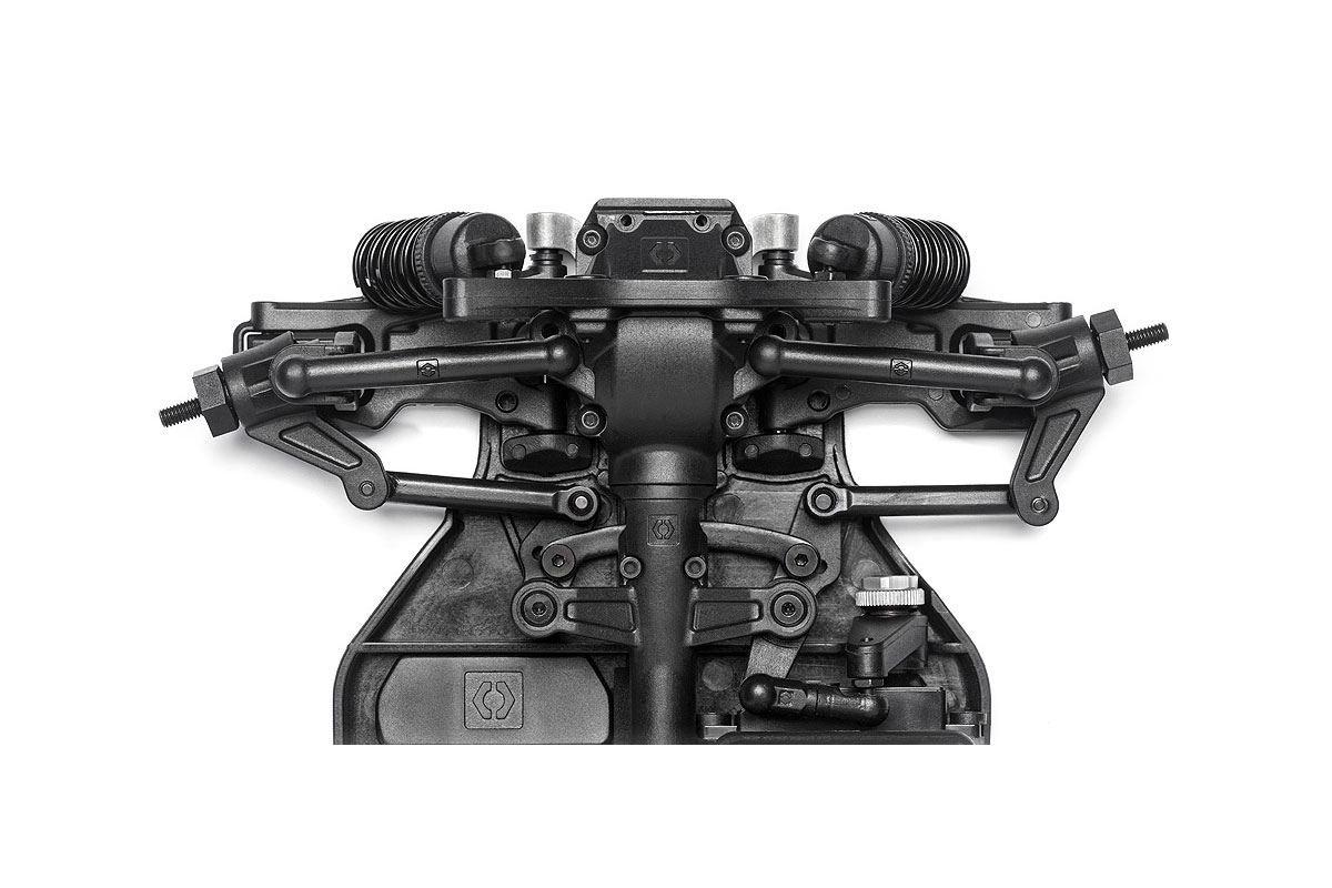 Model dále obsahuje plně stavitelné olejové tlumiče, servo saver, kovový držák motoru či zadní difuzor pro dokonalé proudění vzduchu. Všechna ložiska jsou kuličková. Ochranu podvozku před nárazy zajišťuje také pevný pěnový nárazník.