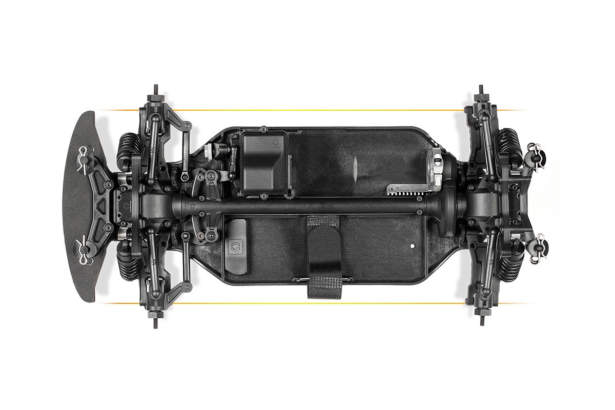 Hlavní podvozek je vytvořen z jednoho kusu vyztuženého plastu a je vybaven tunelem pro uložení hnacího ústrojí. Všechny komponenty jsou na podvozku uloženy hodně dole, což přináší velmi nízko položené těžiště.