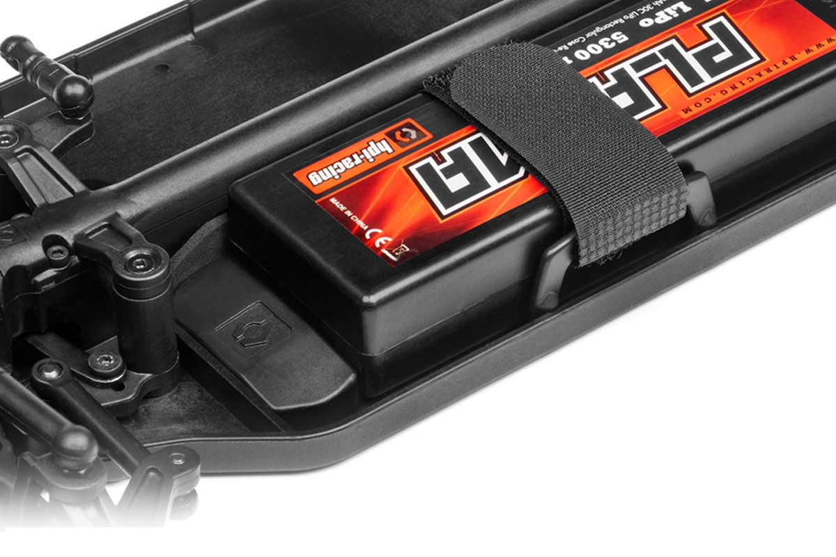 RS4 Sport 3 obsahuje univerzální elektronický regulátor otáček, který může být použit jak s moderními LiPo bateriemi, tak i s NiMH bateriemi. Do prostoru pro baterii se tak vejdou baterie různých velikostí. Pevný popruh drží baterii bezpečně na svém místě a zarážka umožňuje posunutí baterie do požadované pozice dopředu nebo dozadu.