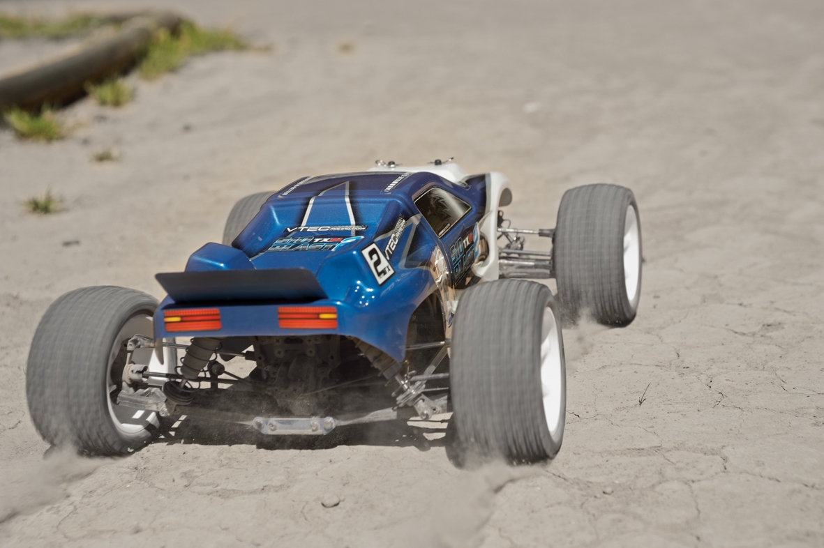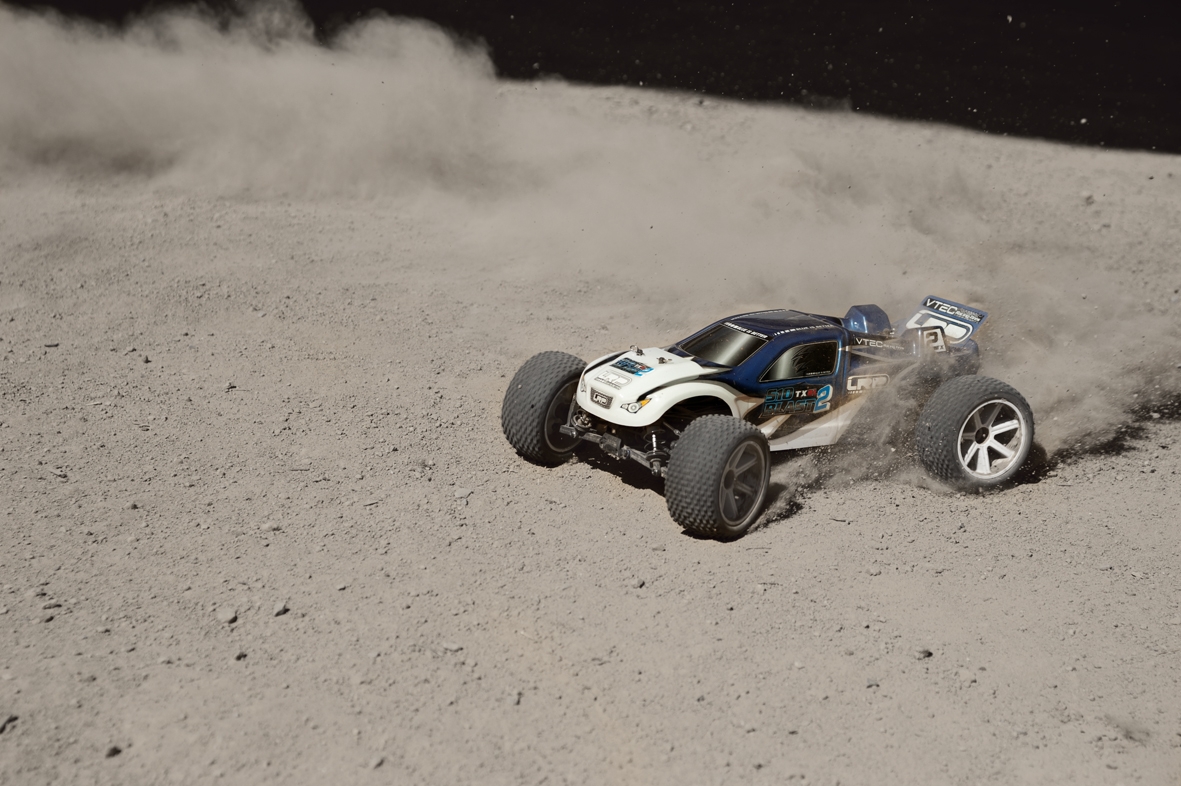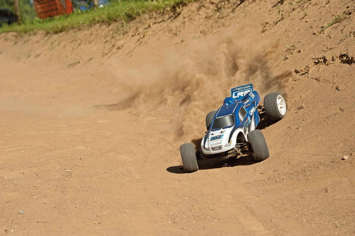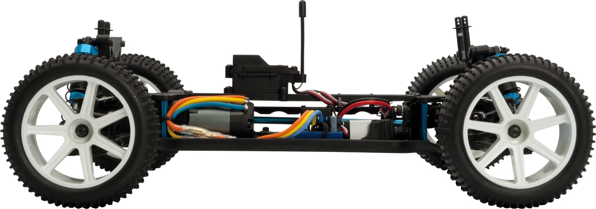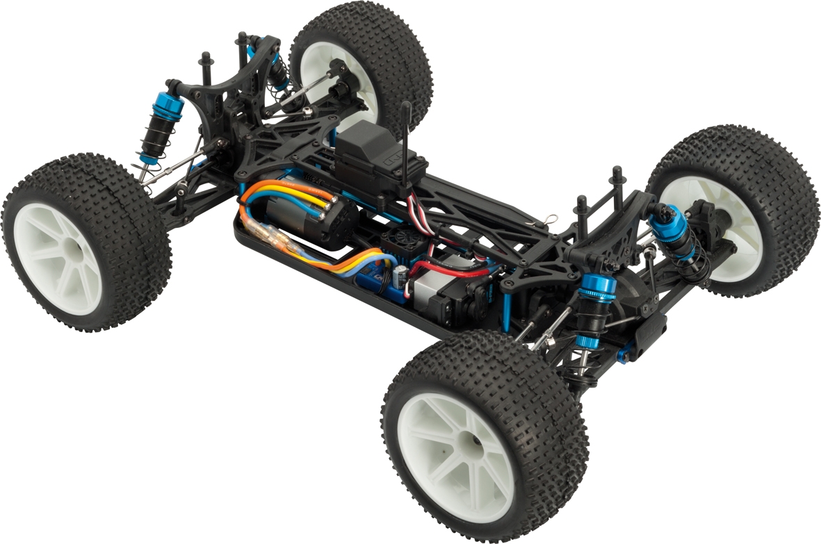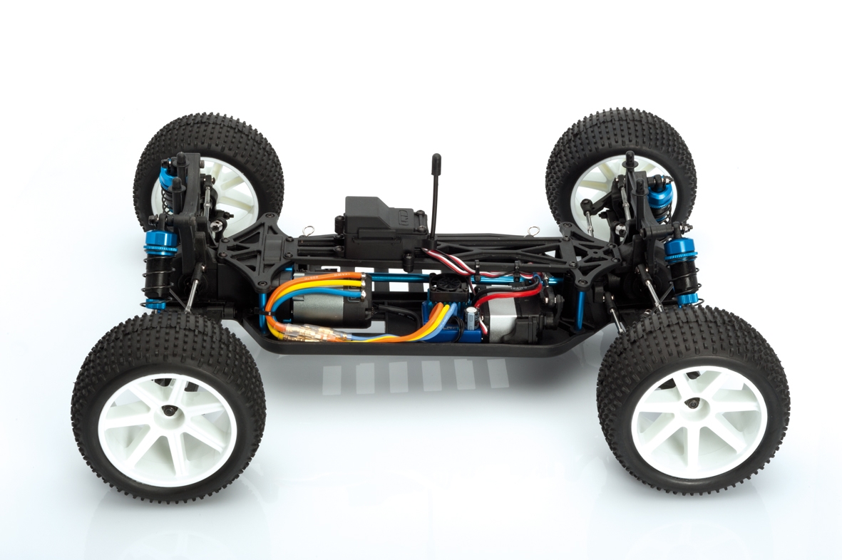 Model terénní truggy v měřítku 1:10 s pohonem všech kol 4x4, poháněný střídavým motorem vč. RC volantové soupravy 2,4 GHz. Vodotěsné servo, vodotěsný regulátor a vodotěsná schránka přijímače.