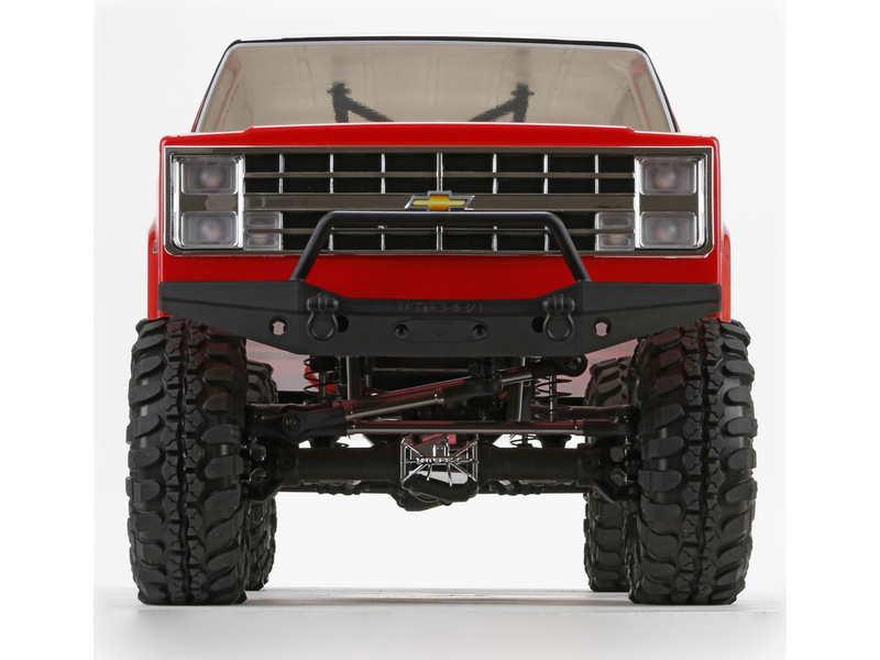 Přední náprava má možnost natočení až o 45°, drážkované CV hřídele náhonu jsou navrženy pro vysoké zatížení a zvládají snadno jízdu v členitém terénu. Licencovaná karoserie 1986 Chevrolet K-5 Blazer je hotová, řada maketových detailů, obtisky jsou přiloženy v balení.