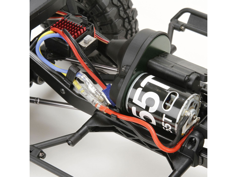 Auto pohání výkonný stejnosměrný motor Dynamite Crawler 35T a voděodolný regulátor Dynamite 60A, servo řízení s momentem 9 kg.cm s kovovým převodem.