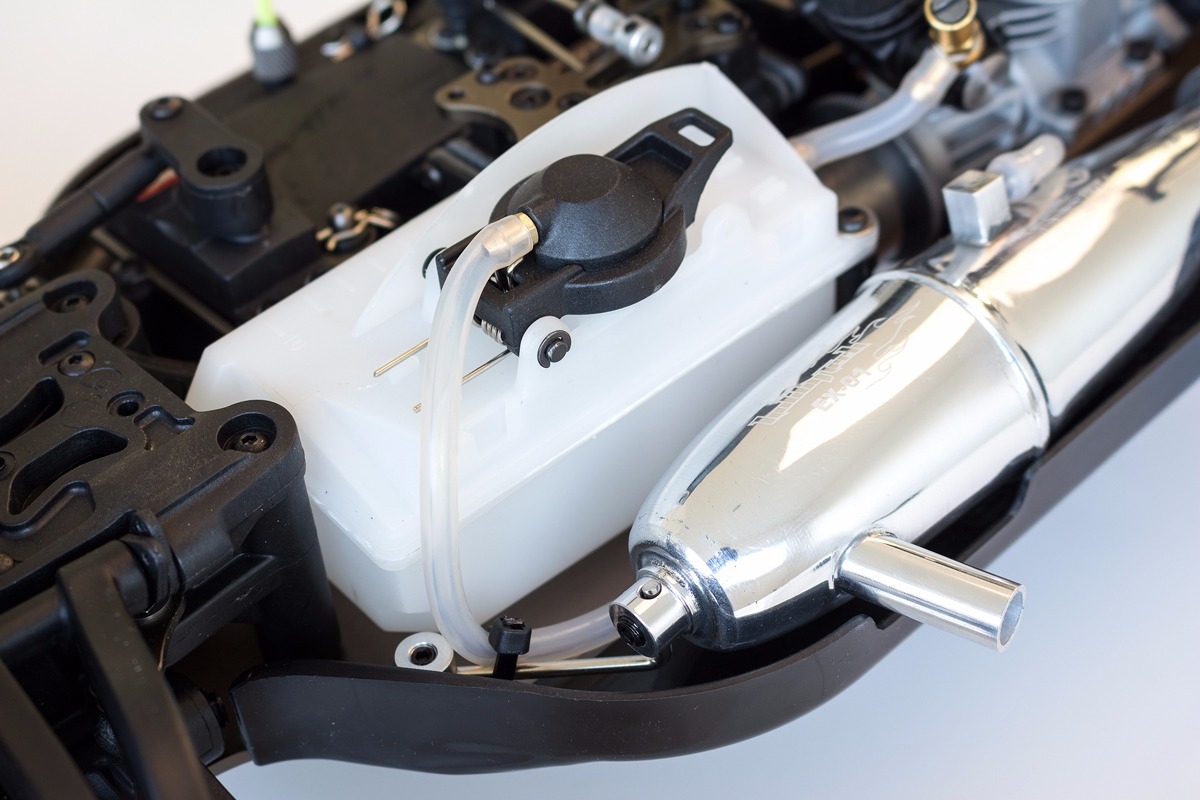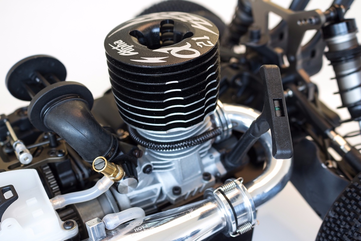 Vychutnejte si jízdu s motorem Alpha 21 pullstart, který je dodáván s leštěným závodním in-line výfukovým systémem a tří lamelovou spojkou. Super hladké 16mm olejové hliníkové olejové tlumiče s vrapovaným stavitelným šroubením na závitovém těle. Nový systém řízení "pivot ball" pro ještě snadnější nastavení úhlu předních ramen pro snadnou manipulaci a lepší kontrolu trakce na trati. Nová zesílená zadní ramena s plastovými kryty proti poškození hnací hřídele a sloužící zároveň jako kryt proti špíně a blátu.