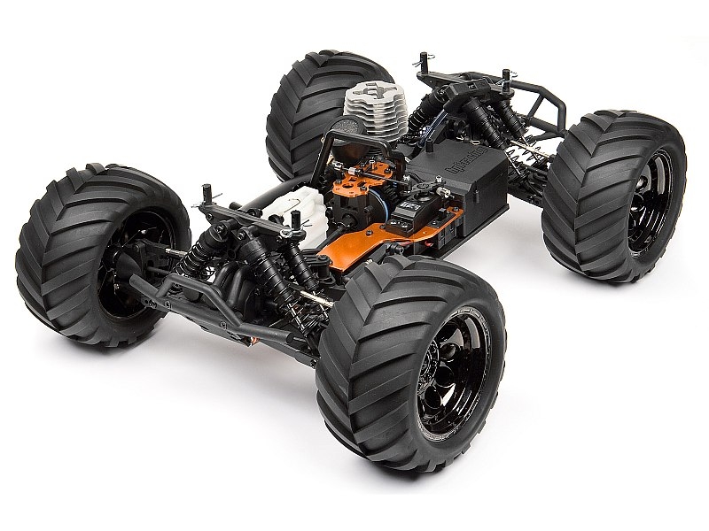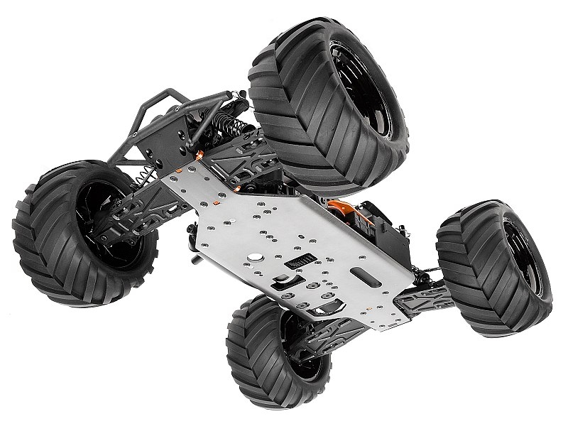 Základem podvozku je šasi vyrobené z velmi odolné slitiny 7075-T6. Výkon motoru je přenášen pomocí dvoulamelové odstředivé spojky a mszinápravových poloos k nápravám, které jsou osazeny diferenciály s kuželovým soukolím. Extra dlouhá ramena vyrobená z pevného plastu zajišřují výbornou stabilitu podvozku a pevná konstrukce zavěšení zase vynikající odolnost při havárii. O odpružení se stará 8 olejovách tlumičů s vinutými pružinami. Kompletně nastavitelná geometrie Vám dává možnost vyzkoušet si i jiné nastavení, než je to tovární. O brždění se stará brzda s jedním vrtaným ocelovým kotoučem, který zajišťuje dostatek brzdného účinku i při vysokých rychlostech.K pohonu je použit výkonný motor Nitro Star G3.0 s dvoujehlovým karburátorem a tahovým startérem. Palivová nádrž má obsah 75ccm. Rozměrný RC box je nejen uzavřen proti nečistotám, ale je umístěn daleko od palivové nádrže, čímž je chráněn před nechtěně rozlitým palivem. Kola s 14mm unašečem jsou obuta do pneumatik s "traktorovým" vzorkem. K ovládání je použita volantová RC souprava TF-1 ve spojení s přijímačem RF-1 a servy SF-1
