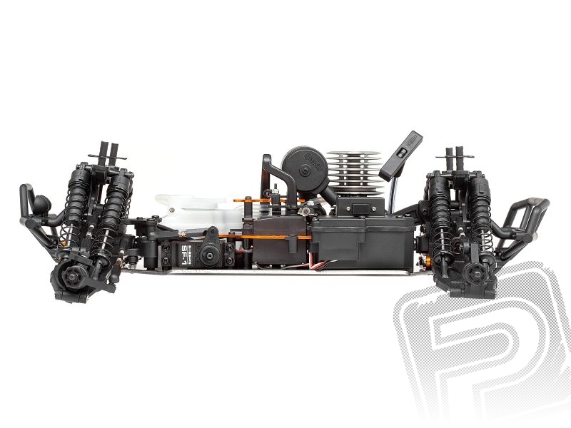 Základem podvozku je šasi vyrobené z velmi odolné slitiny 7075-T6. Výkon motoru je přenášen pomocí dvoulamelové odstředivé spojky a mezinápravových poloos k nápravám, které jsou osazeny diferenciály s kuželovým soukolím. Extra dlouhá ramena vyrobená z pevného plastu zajišťují výbornou stabilitu podvozku a pevná konstrukce zavěšení zase vynikající odolnost při havárii. O odpružení se stará 8 olejovách tlumičů s vinutými pružinami. Kompletně nastavitelná geometrie Vám dává možnost vyzkoušet si i jiné nastavení, než je to tovární. O brždění se stará brzda s jedním vrtaným ocelovým kotoučem, který zajišťuje dostatek brzdného účinku i při vysokých rychlostech.K pohonu je použit výkonný motor Nitro Star G3.0 s dvoujehlovým karburátorem a tahovým startérem. Palivová nádrž má obsah 75ccm. Rozměrný RC box je nejen uzavřen proti nečistotám, ale je umístěn daleko od palivové nádrže, čímž je chráněn před nechtěně rozlitým palivem. Kola s 14mm unašečem jsou obuta do pneumatik s "traktorovým" vzorkem. K ovládání je použita volantová RC souprava TF-40 ve spojení s přijímačem RF-40 a servy SF-1