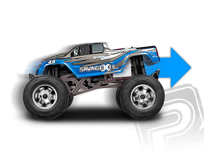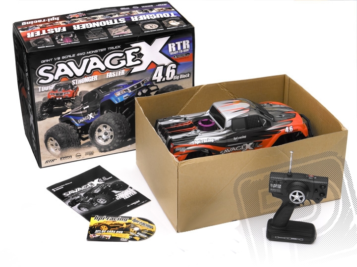 Novinkou od firmy HPI je model Savage X 4,6. Dvě svisle položená plata zaručují dostatečnou tuhost hlavního rámu za všech okolností. K pohonu je použit výkonný motor o objemu 4,6cmm s tahovým startérem. Naprůměrný výkon 2,9 HP je přenášen do dvoustupňové automatické převodovky, která je navíc vybavena zpátečkou. Síla je přenášena pomocí kardanových hřídelů do planetových diferenciálu. Kola jsou nezávisle zavěšená na lichoběžníkových ramenech. Rázy od nerovností pohlcují olejové tlumiče se stavitelnou výškou. Pro zvýšení učinnosti tlumení firma HPI umístila na každou polonápravu dvojici stejných tlumičů. o zastavení se stará dvoukotoučová brzda. Na discích imitující kov jsou "obuty" pneumatiky se speciálním vzorkem zajišťující dostatečnou průchodnost terénem. Součástí balení je volantová tříkanálová vysílačka.