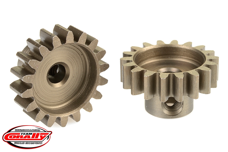 Krátké provedení, materiál tvrzená ocel, 18 zubů, modul ozubení 32DP. Pro hřídel motoru o průměru 3.17 mm (1/8 in). Pastorky TEAM CORALLY jsou vyráběny frézováním a následně tvrzeny, čímž je zajištěna vysoká přesnost ozubení. Všechny pastorky TEAM CORALLY jsou vyrobeny v EU.